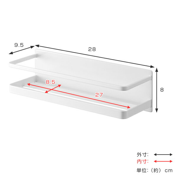 サイズ外寸:約 幅28×奥行9.5×高さ8(cm)内寸:約 幅27×奥行8.5(cm)重量約 650g内容量1個付属品:フック2個材質本体:スチール(ユニクロメッキ+粉体塗装)、マグネット滑り止め:シリコーン生産国中国製耐荷重ラック:約2.5kgフック1つあたり:約250g備考※取り付け可能な壁面:磁石が付く平らな面・スチール壁面区分返品・キャンセル区分(小型商品)ギフトラッピングページを見る山崎実業 MIST マグネットバスルームラック ミスト ワイドおすすめポイントバスグッズをまとめて収納磁石の付く壁面の好きな場所に簡単に取り付けできるラックです。バスグッズはもちろん、歯ブラシにタンブラーなどのケア用品までたっぷり収納できます。シンプルですっきりとしたデザインは、まるで備え付けのようにバスルームに馴染みます。ディスペンサーが3本置ける幅広ワイドタイプなので、標準的な500mlのディスペンサーボトルが3本しっかり収まります。手軽に収納スペースを増やしたい方に最適です。商品詳細水切れのよいトレー構造トレーにはスリットが入っているため水切れが良く、ボトルの底も清潔に保てます。シャンプーや石けんなど、浴室内で使ったものを乾かしながら収納できます。強力マグネットでズレにくいマグネットは壁面を傷つけにくく、錆びないラバータイプを使用しています。強力なマグネットでズレにくく、貼り付け位置の調節も簡単です。取り付け自在なフック付き好きな場所に付けられるフックが2個付属しています。スポンジなどのバスグッズの収納におすすめです。サイズ関連キーワード:泡立てネット スポンジ ゴム シェーバー カミソリ 浴室 バスルーム 小物収納 壁 壁面収納 小物置き 白 バス用品 バスグッズ 収納用品 壁面 風呂 風呂場 お風呂グッズ 山実 yamazaki ホワイト おしゃれ オシャレ お洒落 便利 【MIST ミスト】 LH5977 4237関連商品はこちら山崎実業 MIST マグネットバスルームラック2,640円バス収納 ラックス ウォールラックワイド マグ2,330円バス収納 ボトルラック ワイド お風呂 収納 2,130円バス収納 ボトルラック お風呂 収納 マグネッ2,020円バス収納 チューブラック お風呂 収納 マグネ1,180円バス収納 洗剤ラック お風呂 収納 マグネット2,020円山崎実業 MIST ディスペンサースタンド 12,310円バス収納 マグネット 小物トレー お風呂 収納1,080円山崎実業 MIST マグネットバスルームコーナ3,100円山崎実業 mist ディスペンサースタンド 23,410円シャワーホルダートレイ ミスト MIST バス1,100円 山崎実業 tower マグネットバスルームコ4,950円
