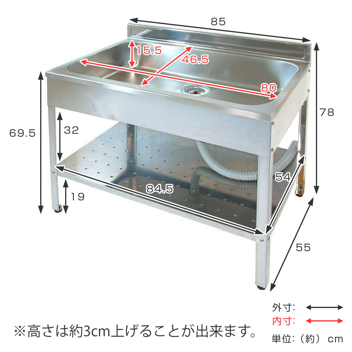 流し台 ステンレス 簡易流し台 幅85×奥行55×高さ78cm ガーデンシンク 屋外 ( シンク アウトドアシンク アウトドア ステンレス製 アウトドアキッチン 家庭菜園 ガーデニング 洗い場 排水ホース付き 簡易キッチン )