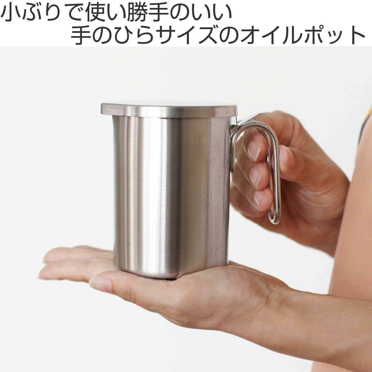 オイルポット 380ml ミニ and ステンレス製 日本製 ( オイルストッカー 油こし器 油濾過 油ポット こし網付き 注ぎ口付き 小さい 油保存 網付き 油濾し 濾過器 取っ手付き ミニサイズ ステンレス )