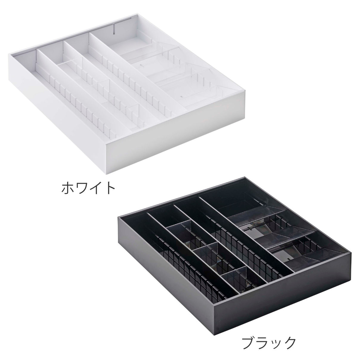 サイズ約 奥行35×高さ5.5(cm)幅29.7〜47.4cm(約6cm間隔で伸縮式)内容量1個材質ケース・仕切り(大):ABS樹脂斜め仕切り・仕切り(小):PS樹脂滑り止め:シリコーン種類ホワイト、ブラック生産国中国製耐熱温度30度耐冷温度-40度区分返品・キャンセル区分(小型商品)ギフトラッピングページを見るtower 立体横伸縮 カトラリーケースおすすめポイント分類して取り出しやすく収納できる引き出しの中に入れてカトラリーを分類収納できる伸縮式の仕切り付きカトラリートレーです。スリム形状で複数で組み合わせても使いやすく、散らかりがちなカトラリーやキッチン小物がスッキリ整理整頓できます。引き出しのサイズに合わせて調節できる引き出しサイズに合わせて横幅が約6cmごとに調節できる伸縮構造で、ぴったり合わせられます。これまで横に余っていたスペースをフル活用して収納力をアップすることができ、デッドスペースが生まれないので気持ちよく収納スペースを整えることができます。商品詳細斜め収納で取り出しやすいカトラリーを斜めに重なるように収納することで、出し入れしやすく省スペースに収納が可能です。※収納するものによっては引き出し上部に干渉することがあります。下の段まで見やすい透明仕切り付属の仕切り板は透明なので、カトラリーが重なり合っている部分も収納物が見えるようになっています。どこに何があるかわかりやすく、誰でも使いやすい仕様です。3種類の仕切りでお好みの収納を作れる横幅だけでなく入れる物に合わせて仕切れる3種類の仕切りが付いています。●仕切り大・・・カトラリーとキッチンツールなど大きく仕切る●仕切り小・・・お弁当用の小物収納に●斜め仕切り・・カトラリーを重ねて収納※仕切り小と斜め仕切りは、約2cmごとに調整可能。カラーサイズシリーズ紹介カトラリートレー 伸縮&スライド式立体斜めカトラリーケース立体斜めカトラリーケース 2個セット立体横伸縮カトラリーケース関連キーワード:5415 5416 4903208054164 白 ホワイト 黒 ブラック カトラリー整理 仕切り 整理整頓 ツール収納 台所収納 キッチン雑貨 キッチン小物 収納用品 キッチンツール お箸 箸 スプーン フォーク ナイフ 高級感 人気 おすすめ オススメ 使いやすい 扱いやすい 便利 無地 シンプル スタイリッシュ モノトーン 山実 タワーシリーズ towerシリーズ yamazaki LH7979 5415、5416関連商品はこちら山崎実業 tower カトラリートレー タワー1,920円~カトラリートレー 伸縮カトラリートレー L 31,970円山崎実業 tower 立体斜めカトラリーケース1,920円 山崎実業 tower 立体斜めカトラリーケー2,970円カトラリーケース キッチン収納トレー カトラリ1,080円カトラリーケース キッチン収納トレー カトラリ678円カトラリーケース キッチン収納トレー カトラリ548円カトラリートレー キッチンメイト スライド整理1,080円カトラリーケース キッチン収納トレー カトラリ418円カトラリー 収納 ラタン 天然素材 カトラリー848円カトラリーケース スライド式整理トレー ブラッ1,100円山崎実業 plate 伸縮&スライド カトラリ1,880円