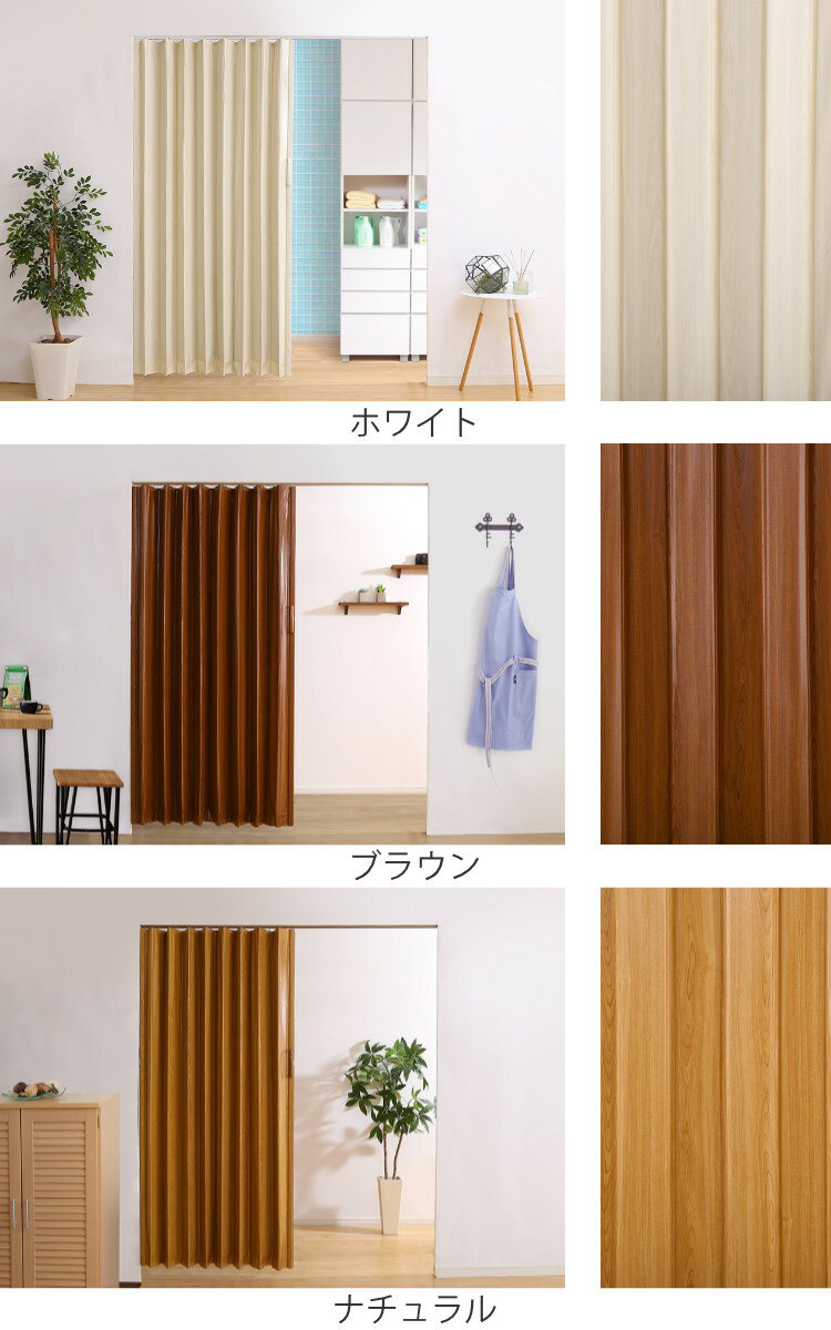 カーテン 木目調アコーディオンドア 100幅 ( 送料無料 100×174cm 間仕切り アコーディオンカーテン ドア アコーディオン 木目調 取付け 後付け レール カットOK 省エネ エコ マグネット 磁石 取っ手 目隠し 簡易ドア )