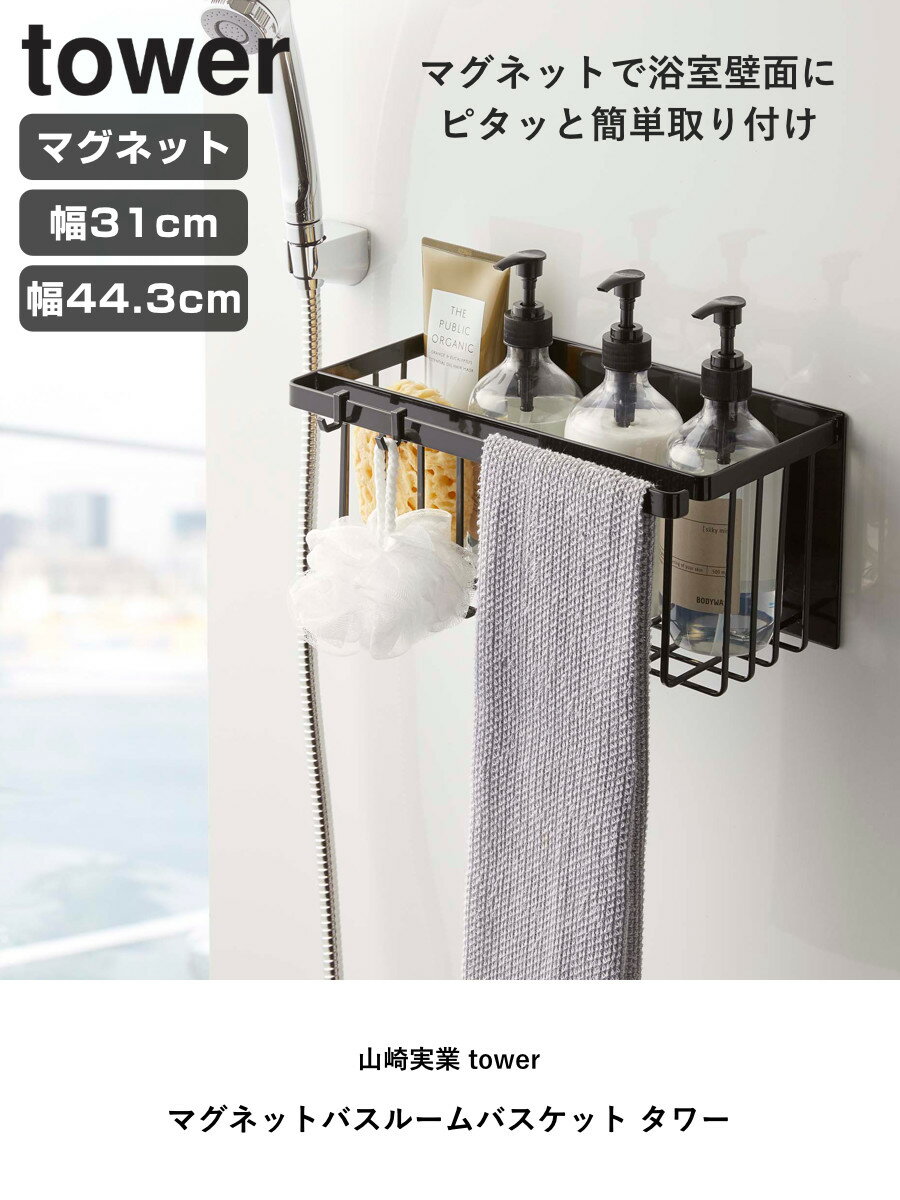 【レビュー特典付き】 山崎実業 tower マグネットバスルームバスケット タワー ( 4903208055420 4903208037693 ワイド 幅31cm 幅44.3cm タワーシリーズ 収納 お風呂 バス 磁石 お風呂収納 バス収納 マグネット 吊り下げ 風呂 )