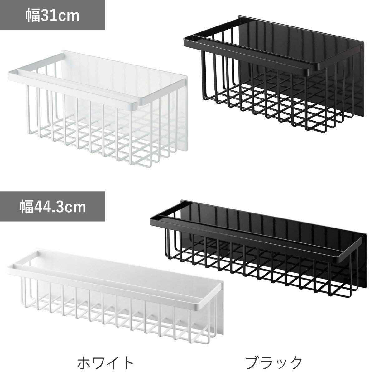 サイズ【幅31cm】外寸:約 幅31×奥行17×高さ15(cm)内寸:約 幅29.3×奥行13.5×高さ13(cm)【幅44.3cm】約 幅44.3×奥行12.3×高さ12(cm)内寸バスケット:約 幅42.7×奥行8.8×高さ10(cm)バー:約幅42.7×奥行2.5(cm)重量【幅31cm】約 1350g【幅44.3cm】約 1450g内容量1個付属品:フック×2材質本体:スチール(ユニクロメッキ+粉体塗装)、マグネット滑り止め:シリコーンカラーホワイト、ブラック生産国中国製耐荷重【幅31cm】バスケット:約3kgバー:約500gフック1つあたり:約250g【幅44.3cm】バスケット:約3kgバー:約1kgフック1つあたり:約250g備考【取り付け可能な壁面】マグネットがつく平らな面・スチール壁面区分返品・キャンセル区分(小型商品)ギフトラッピングページを見る山崎実業 tower マグネットバスルームバスケット タワーマグネットの付く壁面に簡単に取り付けできるバスケットです。バスグッズをまとめてたっぷり収納できます。シンプルですっきりとしたデザインは、まるで備え付けのようにバスルームに馴染みます。掃除道具を収納するとサッと手に取りやすく、すぐに掃除を始められて便利です。片付けに困るお子さまのおふろ用おもちゃも、ポイっと入れるだけで簡単にお片付けができます。水切れが良く、風の通りがよいバスケットで、乾かしながら収納できます。中に入れたボトルなども接地面が少ないため、ぬめりにくく清潔に保つことができます。マグネットは壁面を傷つけにくく、錆びないラバータイプを使用しています。強力なマグネットでズレにくく、貼り付け位置の調節も簡単です。タオルを横から通せるバスケットの手前にはタオルバーが付いています。バーの片側が開いているので、タオルを横から簡単に出し入れできます。取り付け自在なフック付き好きな場所に付けられるフックが2個付属しています。スポンジなどのバスグッズの収納におすすめです。種類サイズあわせて買いたいマグネット&引っ掛け湯おけ タワー風呂椅子 引っ掛け マグネット SH13 SH25 SH30 タワーマグネット水切りワイパー タワー関連キーワード:おもちゃ 浮かせて収納 吊り下げ収納 おもちゃ収納 ホワイト ブラック 白 黒 5542 5543 4903208055437 4903208037709 yamazaki towerシリーズ 山実 YAMAZAKI 山崎 やまじつ モノトーン 無地 シンプル スタイリッシュ 浮かせる収納 タオルバー 浴室 小物収納 小物 シャンプー コンディショナー リンス ボディソープ 小物入れ 洗面収納 洗面用品 ぬめらない 収納用品 お風呂グッズ バスグッズ 省スペース コンパクト ナチュラル おしゃれ オシャレ お洒落 モダン 使いやすい 役立つ 便利 5542、5543 壁面収納 バスルーム ディスペンサーボトル シャンプーラック ボトル LH4930 LH8687 LH12635 LH11728関連商品はこちら 山崎実業 tower マグネットバスルームバ4,950円 山崎実業 tower 引っ掛けバスルームバス4,950円山崎実業 tower マグネットバスブーツホル1,870円山崎実業 tower マグネットバスルームフッ1,920円山崎実業 tower マグネットバスルームヘッ1,980円 山崎実業 tower マグネットバスルームコ2,530円 山崎実業 tower マグネットバスルームラ3,740円 山崎実業 tower マグネットバスルーム多3,410円 山崎実業 tower マグネットバスルームコ4,950円山崎実業 tower マグネットバスルームシャ1,430円 山崎実業 tower マグネット&引っ掛け湯2,310円山崎実業 tower マグネットバスルームラッ1,870円~