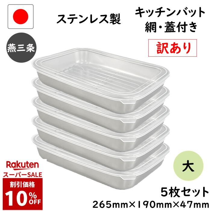 サイズ外寸:約 幅26×奥行21.3×高さ3.8(cm)内寸:約 幅22.8×奥行18.4×高さ3.4(cm)板厚0.6mm重量約 450g容量満水容量:1.3Lフタ閉め時:1L内容量2個材質本体:18-0ステンレス蓋:ポリエチレン生産国日本製パーツ別耐熱温度蓋:80度パーツ別耐冷温度蓋:−20度食器洗い乾燥機部品によって使用不可電子レンジ使用不可オーブン使用不可備考※蓋は食洗機使用不可※蓋は完全密封ではありません区分返品・キャンセル区分(小型商品)ギフトラッピングページを見る●たっぷり入るワイドタイプのキッチンバット2個組です。●2個組なのでパン粉と卵液を分けておくフライの調理に便利です。●ステンレス製で耐久性があり、汚れも落ちやすく、お手入れが簡単です。●保存に便利な蓋付きなので、餃子やハンバーグなどやわらかい料理を場所をとらずに保存することができます。おすすめポイント保存に便利なフタ付きステンレス製バット2個組耐食性、耐久性に優れているステンレス製のフタ付きバットです。ステンレス製なので、食材のにおい移りがなく、いつも清潔に使えます。日本製なのも嬉しいポイントです。フレンチトースト作りやフライの下準備に便利フレンチトーストを卵液に浸しておいたり、コロッケやトンカツなどフライの下準備に便利です。2個セットなので、パン粉と卵液と分けてお使いいただけます。たっぷり入るワイドタイプワイドタイプなので、一度にたくさん入れることができます。食パン2枚並べておけるサイズ感です。フタ付きなので、餃子やハンバーグなど柔らかい料理を冷蔵庫で保存できます。商品詳細冷蔵庫にもすっきり収まる薄いので、積み重ねて置いても邪魔にならない浅型です。サイズ違い1.1L1.3L1.3L 2個セット関連キーワード:ステンレス角バット 調理用バット ふた付き フタ付き 長方形 ワイドタイプ ワイドサイズ 大きめ 大きい キッチン用品 キッチン雑貨 キッチンツール 調理小道具 調理用品 調理小物 保存 食品保存 容器 台所 パン粉 揚げ物 衣付け 餃子 ぎょうざ 漬け込み 下ごしらえ 下準備 シルバー シンプル おすすめ オススメ 便利 役立つ LH15282 関連商品はこちらフタ付きステンレスバット ワイド 日本製 3,110円お料理はかどる蓋付き角バット 1/2サイズ 角3,230円お料理はかどる蓋付き角バット 1/1サイズ 角4,520円お料理はかどる蓋付き角バット 1/3サイズ 角2,660円お料理はかどる蓋付き角バット 1/4サイズ 角2,320円保存容器 ステンレス 保存バット 大サイズ 蓋3,000円保存容器 ステンレス 保存バット 小サイズ 蓋2,210円フタ付バット スマート ステンレス 日本製 2,660円保存容器 深〜い角バット フタ付き 中 ママク2,210円保存容器 深〜い角バット フタ付き 大 ママク2,660円保存容器 深〜い角バット フタ付き 小 ママク1,320円保存容器 ステンレス 保存バット 900ml 2,210円~