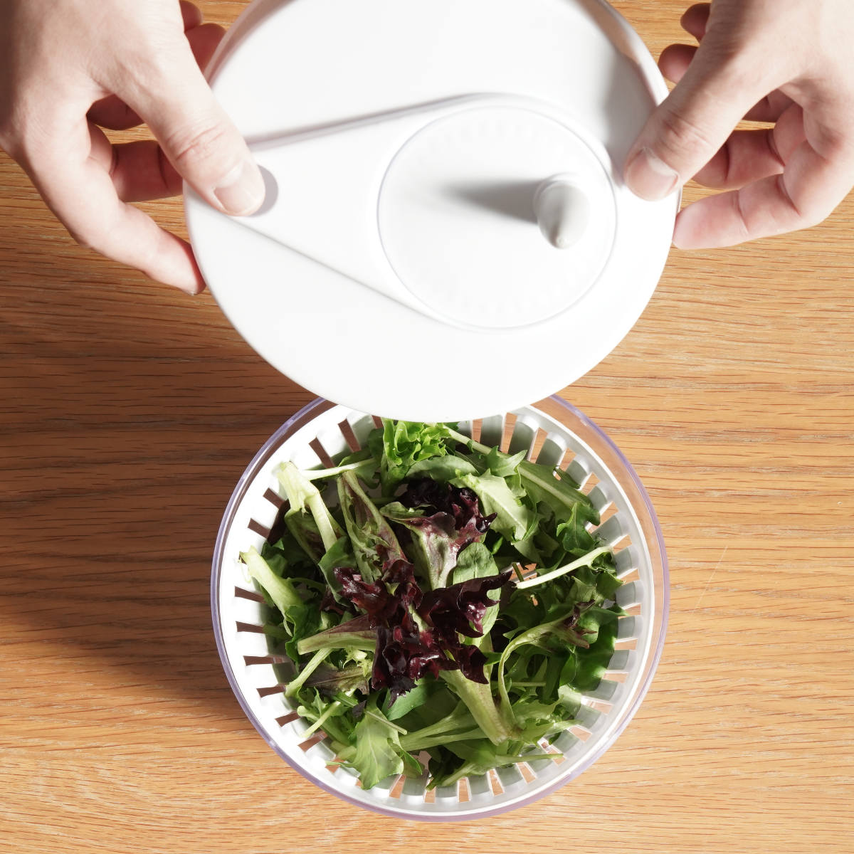 サイズ約 高さ13.5(cm)直径:約 16(cm)重量約 250g容量約 1.3L内容量1個材質容器:ポリスチレン(耐熱温度80度・耐冷温度-20度)バスケット・ふた・ツマミ・回転板:ポリプロピレン(耐熱温度100度・耐冷温度-20度)生産国中国製区分返品・キャンセル区分(小型商品)ギフトラッピングページを見る●つまみを回すだけで簡単に野菜の水切りができます。●一人分や少量のカット野菜に最適な小さめサイズです。おすすめポイントカット野菜の水切りにちょうど良いミニサイズ一人分や少量のカット野菜に最適な小さめサイズの水切りです。水切り穴が付いているので、水の排出に便利です。コンパクトに収納できるのも嬉しいポイント。商品詳細くるくるどちらに回しても水切りOKつまみを回すだけで簡単に水切りができます。時計・反時計、どちらに回してもOK。サラダのボウルにも使えるバスケットは取り外せるので、単品でザルとしてもお使いいただけます。容器は、ボウルとしても活躍します。サラダの盛り付けにもぴったりです。関連キーワード:キッチン雑貨 調理用品 調理雑貨 オススメ おすすめ 便利 役立つ 新生活 小さい 小ぶり 一人暮らし ひとり暮らし LH8546 関連商品はこちらサラダスピナー Simplice ベジタブル野1,920円サラダスピナー LIBERALISTA リベラ2,230円水切り ジャンボ水切り器 20型 業務用 21,800円水切り ジャンボ水切り器 10型 業務用 19,800円サラダスピナー&ミキサー LIBERALIST2,950円野菜水切り器 サラダスピナー グリップ式 1,180円OXO ガラスサラダスピナー 食洗機対応 野菜12,100円OXO ステンレスサラダスピナー 食洗機対応 12,100円 OXO サラダスピナー クリア 大 食洗機対6,380円 OXO サラダスピナー クリア 小 大 食洗4,950円~電動サラダスピナー atomico 充電式 コ5,500円サラダスピナー Felio コンパクト たため3,980円