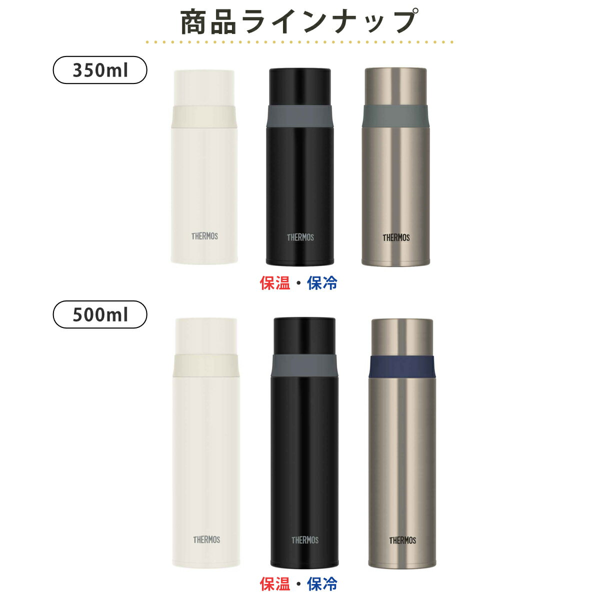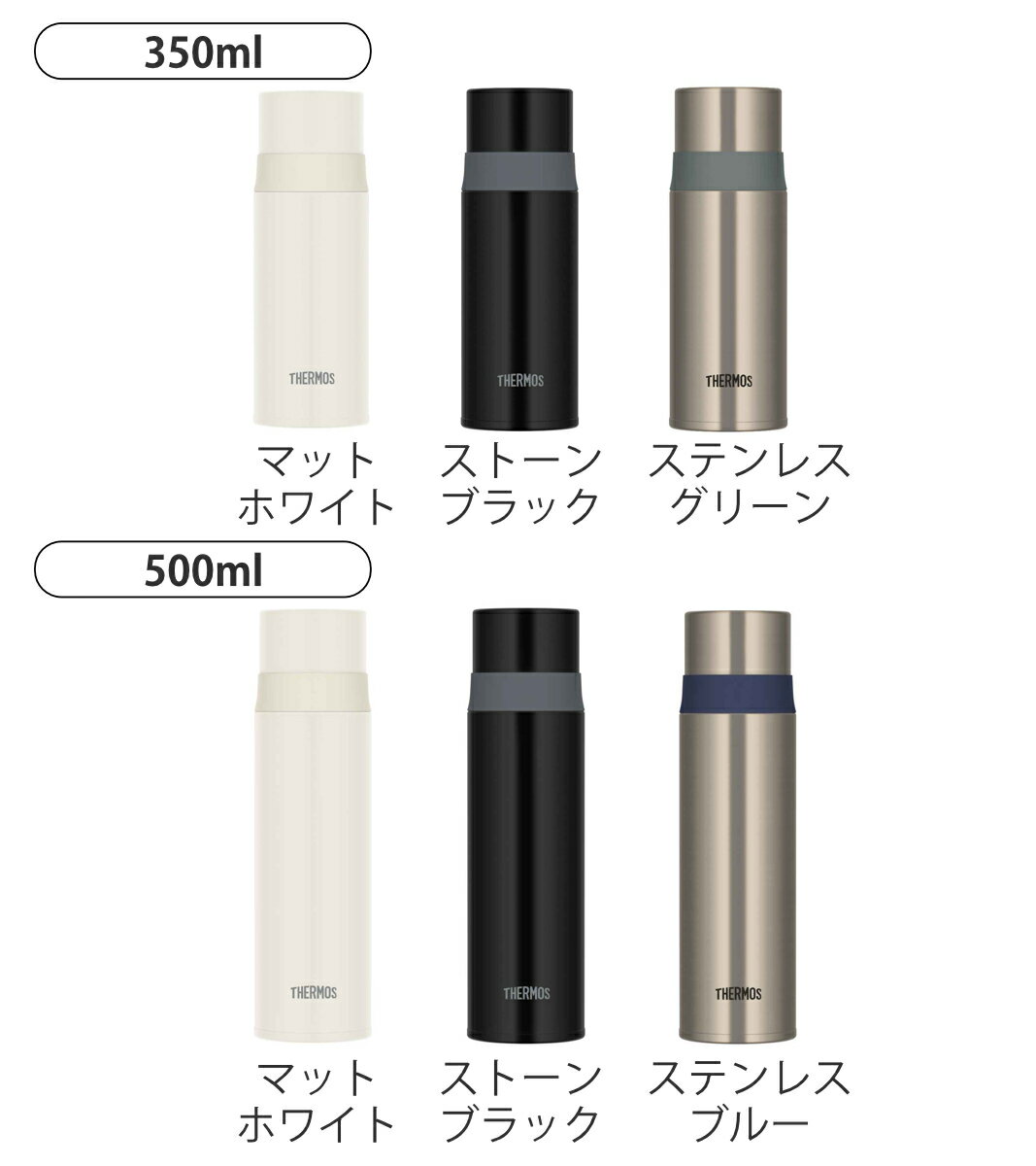 サイズ【350ml】約 高さ19(cm)直径:約 6.5(cm)口径:約4(cm)【500ml】約 高さ23.5(cm)直径:約 6.5(cm)口径:約4(cm)重量【350ml】約 200g【500ml】約 299g容量【350ml】約 350ml【500ml】約 500ml内容量1個(本体、コップ)材質内びん:ステンレス鋼胴部:ステンレス鋼 (アクリル樹脂塗装)コップ:ポリプロピレン・ステンレス鋼 (アクリル樹脂塗装)中せん:ポリプロピレンパッキン:シリコーンカラーマットホワイト、ストーンブラック、ステンレスグリーン、ステンレスブルー生産国マレーシア製保温効力【350ml】69度以上 (6時間)【500ml】74度以上 (6時間)保冷効力【350ml】11度以下 (6時間)【500ml】10度以下 (6時間)食器洗い乾燥機使用不可備考※スポーツ飲料を入れてご使用になる場合は、塩分によりサビが発生する場合がございますので当日中に洗ってしっかり乾燥させてください。区分返品・キャンセル区分(小型商品)ギフトラッピングページを見る●軽くてスリムな、おでかけにも便利なコップ付き水筒です。●コップタイプなので飲み物をコップに出して、温度を調節しながら飲むことができます●冷たいスポーツ飲料を入れる事ができます。●魔法瓶構造なので、高い保温・保冷力を保ちます。●すべてのパーツを丸洗いできるので清潔に保つことができます。おすすめポイントおでかけに便利なコップタイプ軽くてスリムで持ち運びやすい、おでかけにも便利なコップタイプの保温保冷水筒です。コップタイプなので飲み物をコップに出して、温度を調節しながら飲むことができます。スポーツ飲料OKスポーツ飲料を入れることもできるので、スポーツシーンや夏場の水分補給に最適です。※温めたスポーツ飲料は入れないでください。商品詳細コップに注ぎやすいフルオープンするため飲み物をコップに注ぎやすい形状です。丸洗いできてお手入れも簡単です。漏れずに安心ワンプッシュでオープンする使いやすい中せんです。カチっと閉まる構造のため、漏れずに安心してお使いいただけます。種類対応しているパーツ・オプション中栓パッキン関連キーワード:スポーツ飲料対応 ワンタッチ 軽い 軽量 通勤 通学 オフィス 会社 散歩 お出かけ 魔法瓶 シンプル 無地 女性 女子 レディース 男性 男子 メンズ こども 子ども ホワイト 白 白色 ブラック 黒 黒色 シルバー 350 500 0.35L 0.5L FFM-352 FFM-502 LH12086 LH4 LH8 LH10 LH17関連商品はこちら水筒 サーモス ステンレススリムボトル コップ3,480円水筒 500ml TRIP BOTTLE コッ4,620円サーモス 水筒 350ml 500ml JNR3,770円~サーモス 水筒 350ml 真空断熱ケータイマ3,770円サーモス 水筒 500ml 真空断熱ケータイマ4,080円水筒 1L TRIP BOTTLE L コップ5,500円サーモス 水筒 マグ 250ml 真空断熱ケー3,460円サーモス 水筒 350ml 真空断熱ケータイマ3,260円象印 水筒 350ml スリムステンレスボトル3,980円象印 水筒 500ml スリムステンレスボトル4,190円水筒 オクターブ 広口スリムダブルステンレスボ1,920円サーモス 水筒 600ml 800ml 1L 3,580円~