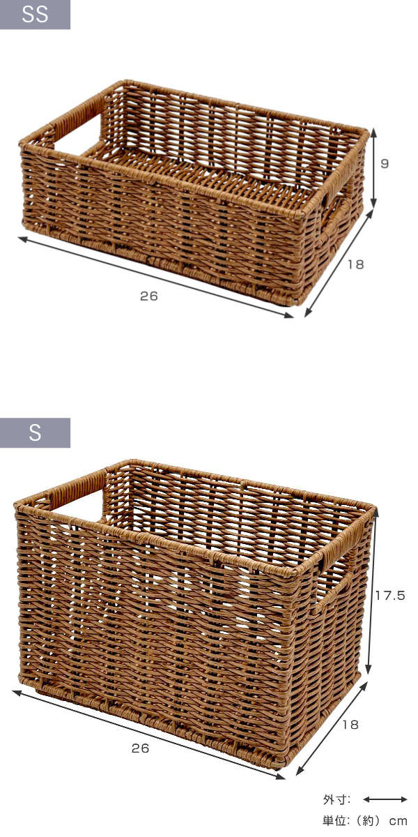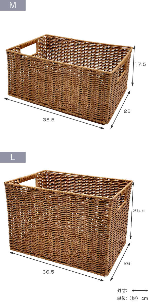 サイズ【SS】約 幅26×奥行18×高さ9(cm)【S】約 幅26×奥行18×高さ17.5(cm)【M】約 幅36.5×奥行26×高さ17.5(cm)【L】約 幅36.5×奥行26×高さ25.5(cm)内容量1個材質ポリエチレン、アイアンスタッキング可能注意事項※ハンドメイド商品のため、サイズや仕様に個体差やゆがみがあります。※アルコールの使用は推奨していません。区分返品・キャンセル区分(小型商品)ギフトラッピングページを見る●天然素材のようなあたたかみを感じる素材のバスケットです。●手軽にインテリアとしてカゴを取り入れたい方におすすめです。●同じサイズはもちろん、サイズ違いでも向きを変えてスタックできます。●底面のアイアンが下のバスケットに引っ掛かりずれにくいです。●水や湿気に強いポリエチレンなので、湿気の多い場所でも重宝します。おすすめポイント天然素材のようなあたたかみを感じるバスケット【SS】【S】【M】【L】まるで天然素材のような、ポリエチレン素材のバスケットです。インテリアの中にカゴ素材を取り入れたいけれど、天然素材のものはお手入れの難しさや、衛生面が気になる方という方におすすめです。細々したものの整理に【SS】文具などの細々したもの、日用品、靴下、ハンカチ入れなどに適したサイズです。小物を隠して収納【S】食品ストックやフェイスタオルなど使用頻度の高いものを隠しながら細かく分けて収納するのに便利です。日用品の目隠しに【M】トイレットペーパーなど日用品のストックや、パジャマなどの衣類にぴったりなサイズです。大きなものも入る【L】深めに作られているのでペットボトルなど食品ストック、大きめのブランケット、バスタオルなどの収納に便利なサイズです。サイズ違いもスタックできる同じサイズはもちろん、サイズ違いでも向きを変えてスタックできます。組合せバリエーションが豊富なので、シリーズでそろえればすっきりとした収納空間を作ることができます。商品詳細スタックしてもずれにくい底面のアイアンが下のバスケットに引っ掛かるので、スタックしてもずれにくいです。水拭きできて衛生的水や湿気に強いポリエチレンなので、湿気の多いランドリーやガーデンでも重宝します。汚れてもサッと水拭きできるので、衛生的です。別売りのフタを付けられる別売りのフタを付ければ、埃やゴミが中に入るのを防いだり、目隠し収納に最適です。サイズご注意点※ハンドメイド商品のため、サイズや仕様に個体差やゆがみがあります。対応しているパーツ・オプションSS/S専用蓋M/L専用蓋関連キーワード:小物入れ おしゃれ 積み重ね ハンドメイド リビング 洗面所 キッチン 玄関 卓上 水洗いできる お手入れ簡単 水洗いOK 水洗い可能 籠 収納カゴ 収納バスケット ケース リビング収納 インテリア 見せる収納 小物ケース 収納用品 食品ストック 食品ストッカー 台所 ストック インテリア雑貨 プレゼント オシャレ おすすめ オススメ 人気 使いやすい シンプル キッチン収納 収納ケース 整理整頓 小物 入れ 浅型 清潔 ブラウン 衛生的 安心 ランドリー 長方形 四角 カラーボックス 屋外 キャンプ アウトドア 文房具 コスメ メイク インナーボックス 水周り オモチャ スリッパ タオル 深型 LH13176関連商品はこちらバスケット トークスタック PE柳 スタッキン3,840円バスケット トークスタック PE柳 スタッキン2,710円バスケット トークスタック PE柳 スタッキン1,980円かご KLEANE PLUS 洗える 抗菌素材3,620円~バスケット 収納 ユティルナイール スタンダー4,070円バスケット 洗えるバスケット 小物入れ 水洗い668円~かご バンブス フェイク PE 竹 収納 バス3,440円バスケット 収納 ユティルナイール スタンダー3,160円ユティルオクタ スタッキングバスケット 洗える5,390円バスケット 収納 ユティルナイール スタンダー4,520円ユティルオクタ レクトバスケット ハイ 洗える4,070円収納ボックス リバースボックス カラーボックス998円~