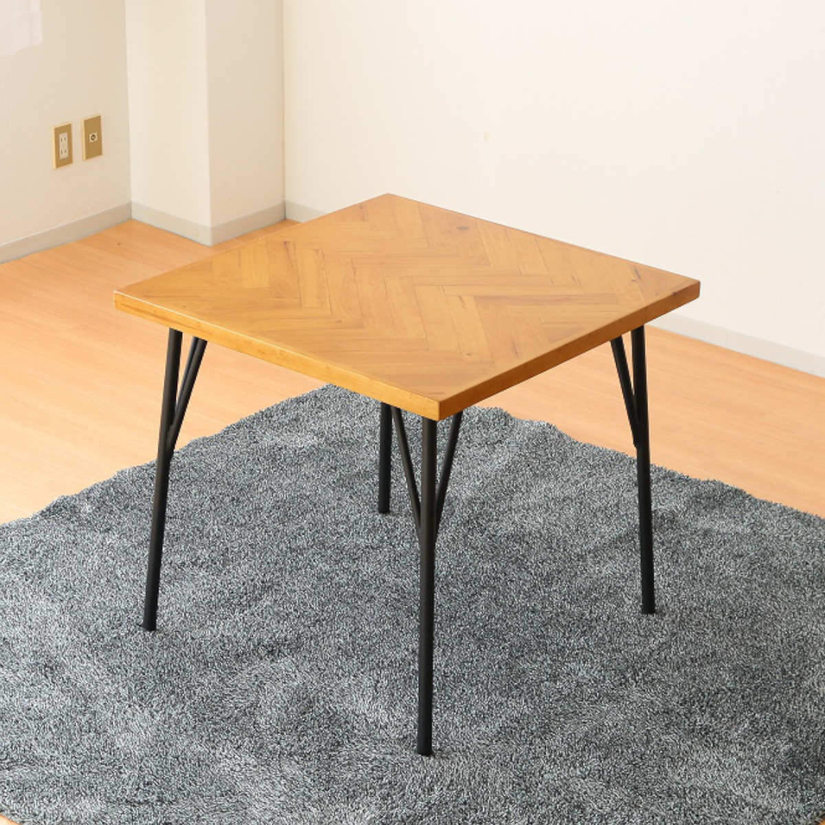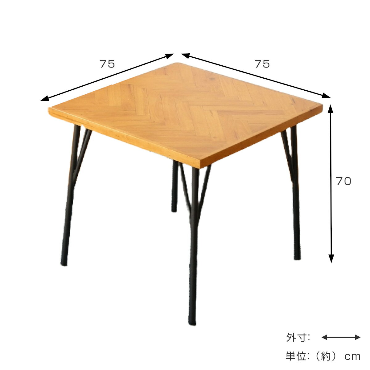 ダイニングテーブル 幅75cm ヘリンボーン柄 ( カフェテーブル ミニテーブル 2人掛け ダイニング テーブル 食卓 正方形 天然木 スチール脚 コンパクト 異素材 木目調 )
