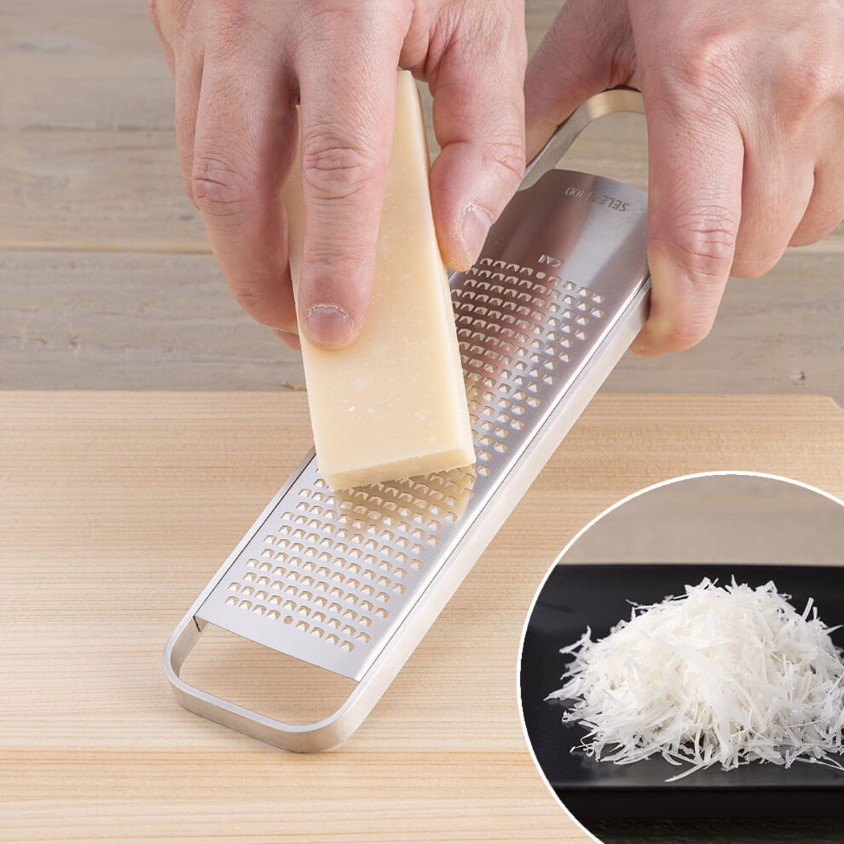 サイズ本体サイズ:約 幅5×奥行20.5×高さ1.1(cm)カバーサイズ:約 幅5.4×奥行18.5×高さ1.7(cm)重量約 92g内容量1個付属品:カバー材質フレーム・刃部:18-8ステンレススチールカバー:ポリプロピレン生産国中国製パーツ別耐熱温度カバー:110度食器洗い乾燥機使用可能区分返品・キャンセル区分(小型商品)ギフトラッピングページを見る●ハードチーズ、柑橘、生姜、ニンニクなど、日常的に使う食材もおろせるグレーターです。●無駄のないシンプルな形状です。●便利な収納カバー付きです。●一方向の目立てで、スポンジのひっかかりが少なく洗いやすいです。●食洗機使用可能です。●機能とデザインを極限にまで追求しながらも本格的で調理しやすく料理を楽しくするシリーズ「SELECT100」。おすすめポイント日常的に使う食材もおろせるグレーターハードチーズだけでなく、柑橘、生姜、ニンニクなどの日常的に使う食材もおろせるグレーターです。これ一つあれば、いろいろな食材がおろせるので便利です。※ニンニクは粗めの仕上がりになります。無駄のないシンプルな形状グリップ部は刃体との一体型になっており、シンプルで無駄のない形状です。引き出しポケットにも収まるコンパクトサイズで、収納しやすいのも嬉しいポイントです。本体上部には穴が開いているので、フック掛け収納も可能です。商品詳細便利な収納カバー付きグレーターには収納カバーが付いています。カバーは先端がヘラ形状になっているので、調理の際に刃の裏側に残った食材を、手を汚すことなく集めてムダなく使うことができます。(特許第7358025号)スポンジのひっかかりが少なく洗いやすい一方向の目立て(片刃)で洗う時にスポンジの引っ掛かりが少なく洗いやすいです。食洗機にも対応しています。ブランド紹介SELECT100シリーズ料理を通じて「幸せな時間作り」のお手伝いをする基本の調理道具SELECT100。「使いやすい道具はシンプルで美しく、手になじむ」をコンセプトにした、誰もが心地よく料理を愉しめる道具です。シリーズ紹介グレーター薬味おろしおろしプレートおろし器関連キーワード:パルメザンチーズ チーズおろし 柑橘 生姜おろし器 レモン皮 ゆず皮 柚子皮 製菓道具 製パン道具 お菓子作り 削る 削り キッチン用品 キッチン小物 キッチン雑貨 キッチングッズ 調理小道具 調理用品 調理小物 調理器具 調理道具 おすすめ オススメ 使いやすい 役立つ 便利 ステンレス製 お洒落 おしゃれ オシャレ シンプル かっこいい カッコイイ スタイリッシュ シルバー LH15168 LH7266 関連商品はこちらグレーター カバー付き dreamfarm O3,110円グレーター ふわっと削ってみま専科 日本製 3,230円チーズグレーター ミニ チーズおろし器 ステン770円おろしプレート SELECT100 おろし金 898円チーズおろし器 チーズロワイヤル エッチングチ798円おろし金 Oros handy grater 2,890円チーズおろし器 チーズロワイヤル エッチングチ2,020円おろし器 貝印 セレクト100 おろし金 2,130円チーズおろし器 チーズロワイヤル エッチング4598円チーズおろし モクハウス 日本製 チーズおろし1,265円おろし器 チーズ用 チーズロワイヤル エッチン2,020円大根おろし器 カラフルスマイル 水切り 回転 2,900円