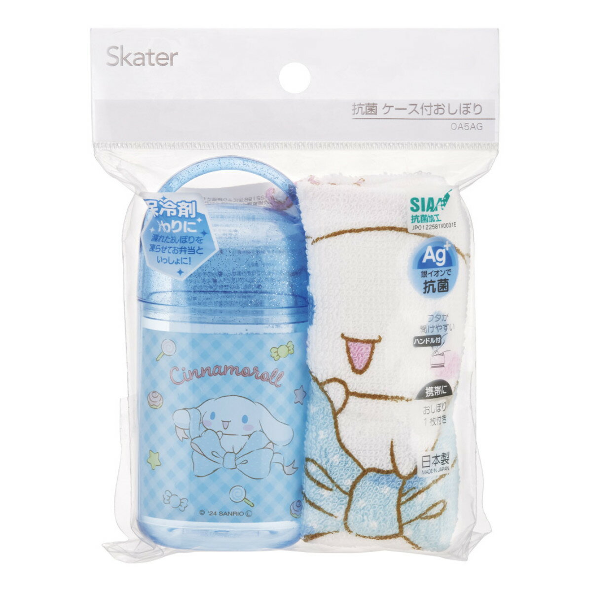 おしぼり 抗菌ケース付おしぼり シナモロールビックリボン ( シナモロール お手拭き タオル ハンカチ 手拭き ハンドタオル 抗菌 おしぼりタオル おてふき おしぼりケース ケース付 子供 キッズ 給食 AG 銀 )
