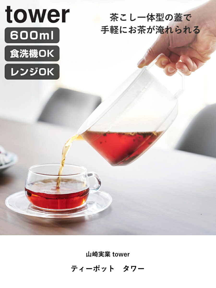 【レビュー特典付き】 山崎実業 tower ティーポット タワー ( 4903208016728 タワーシリーズ 紅茶ポット 電子レンジ対応 食洗機対応 半透明 一体型 茶葉がこせる フタ 蓋 一体型 茶こし一体型 急須 )