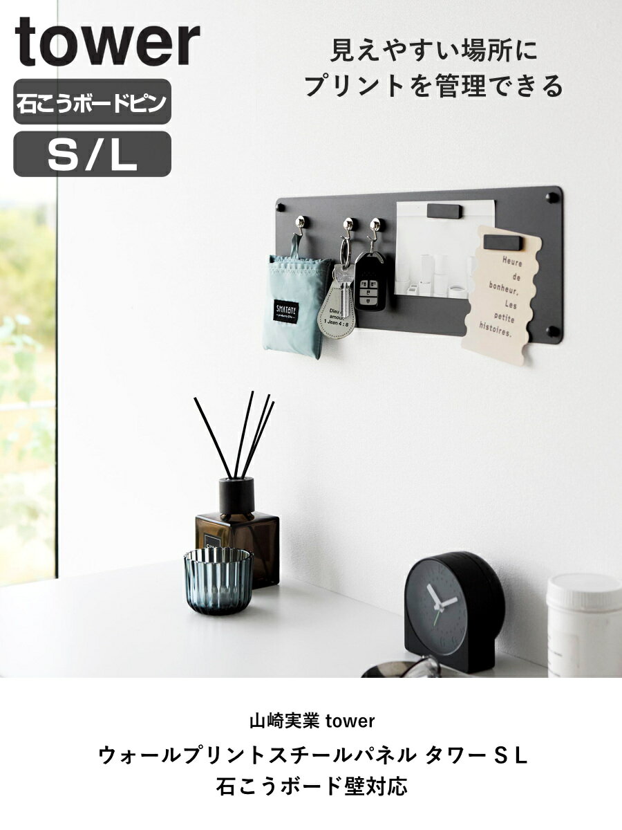 サイズ【Sサイズ】約 幅47×奥行0.7×高さ15(cm)【Lサイズ】約 幅68×奥行0.7×高さ35(cm)重量【Sサイズ】約 710g【Lサイズ】約 2.26kg内容量本体:1個【Sサイズ】付属品:石こうボードピンセット(取り付けピース×4、クギ×12、キャップ×4)、木ネジ×4、マグネット×3【Lサイズ】付属品:石こうボードピンセット(取り付けピース×6、クギ×18、キャップ×6)、木ネジ×6、マグネット×4材質本体:スチール(粉体塗装)カラーホワイト、ブラック生産国中国製耐荷重【Sサイズ】約 500g(静止荷重)【Lサイズ】約 1kg(静止荷重)備考取り付け可能な壁石こうボードピン使用時:壁紙・布壁紙・ビニール壁紙貼りなどの石こうボード、薄ベニヤ木ネジ使用時:柱・板壁(厚さ1cm以上)・プリント合板(裏側に水平にサンがある場所)・裏に下地材(間柱)が入っている壁区分返品・キャンセル区分(小型商品)ギフトラッピングページを見る山崎実業 tower ウォールプリントスチールパネル タワー S L 石こうボード壁対応石こうボードピンで簡単に取り付けできるマグネット対応のスチール製プリントパネルです。見えやすい場所にプリントを管理することができます。マグネットが付属しています。壁の穴が目立ちにくい石こうボードピンで簡単に取り付けできます。木ネジでの取り付けも可能です。設置場所や用途に合わせて縦横お好みの向きに設置できます。リモコンにお手持ちのマグネットを貼り付けてリモコン収納パネルとしての使用や、玄関に設置してお手持ちのマグネットフックを付けて鍵の収納スペースとしての使用もおすすめです。カラーサイズシリーズ紹介ウォールプリントボード タワー トレー付き 石こうボード壁対応マグネット冷蔵庫横隠せるスライドスチールパネルタワーフック付きウォールスチールパネル タワー ワイドデスク横トレー付きスチールパネル タワー関連キーワード:4903208101547 4903208101554 4903208101561 yamazaki towerシリーズ 山実 YAMAZAKI 山崎 やまじつ ブラック ホワイト 白 黒 モノトーン 無地 シンプル スタイリッシ 10153 10154 10155 10156 Sサイズ Lサイズ プリント 壁 壁面 有効活用 デスク横 スチール製 プリントパネル マグネット対応 オフィス カウンター 子ども部屋 書斎 デスク スチール カスタマイズ 簡単設置 事務所 間仕切り 文房具 スマホ タブレット パーテーション マグネットボード インテリア おしゃれ オシャレ お洒落 ボード 整理 省スペース 見せる収納 壁収納 LH17957 LH12728 10153 10154 10155 10156関連商品はこちら 山崎実業 tower ウォールプリントスチー2,200円 山崎実業 tower ウォールプリントスチー3,850円 山崎実業 tower ウォールプリントボード4,510円 山崎実業 tower ウォール縦横連結プリン3,300円 山崎実業 tower ウォール隠せるルーター2,970円 山崎実業 tower ウォール隠せるルーター2,640円 山崎実業 tower ウォールリモコンホルダ2,200円山崎実業 tower ウォールヘアーアイロンホ2,190円 山崎実業 tower ウォール隠せるトイレ壁5,830円 山崎実業 tower ウォールトイレットペー3,960円 山崎実業 tower ウォールフック タワー2,200円 山崎実業 tower ウォール洗面収納ケース2,530円