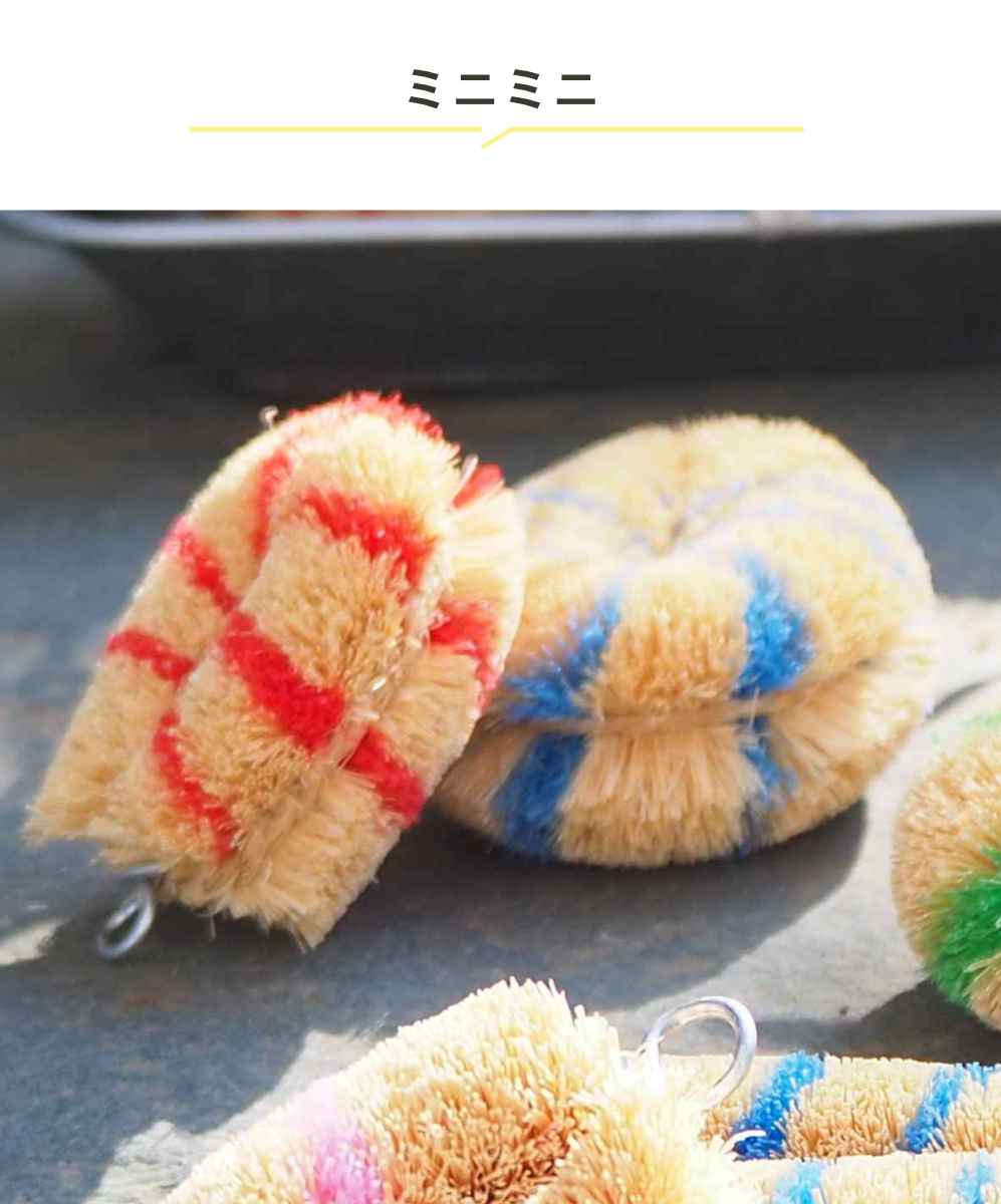 たわし 亀の子束子 日本製 シマシマ ( タワシ 束子 亀の子タワシ ミニ 小さい キッチン掃除用品 キッチン用品 細い 長い 掃除用品 掃除グッズ 台所用品 )