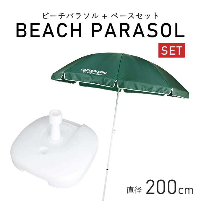 [本日ポイント5倍]ビーチパラソル パラソルベース セット UVカット 折りたたみ 径 200cm サンシェード スタンド 土台 日除け 日よけ 自宅 屋外 庭 ガーデンパラソル 持ち運び パラソルスタンド ベーススタンド 屋外 固定 アウトドア