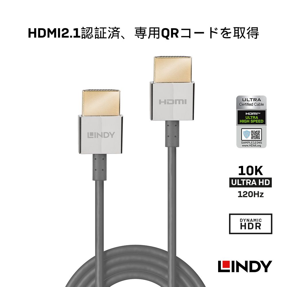 LINDY CROMO LINE 0.5m 1m HDMI 2.1 Type-A極細ケーブル スリム 8K 60Hz 4K 120Hz HDR Dolby Vision eARC ARC VRR ALLM QFT QMS Ultra High Speed 認証済 PS5 PS4 Pro Xbox Switch PC TV モニター プロジェクター 軽量 持ち運び便利 高耐久 金メッキコネクタ ノイズ低減