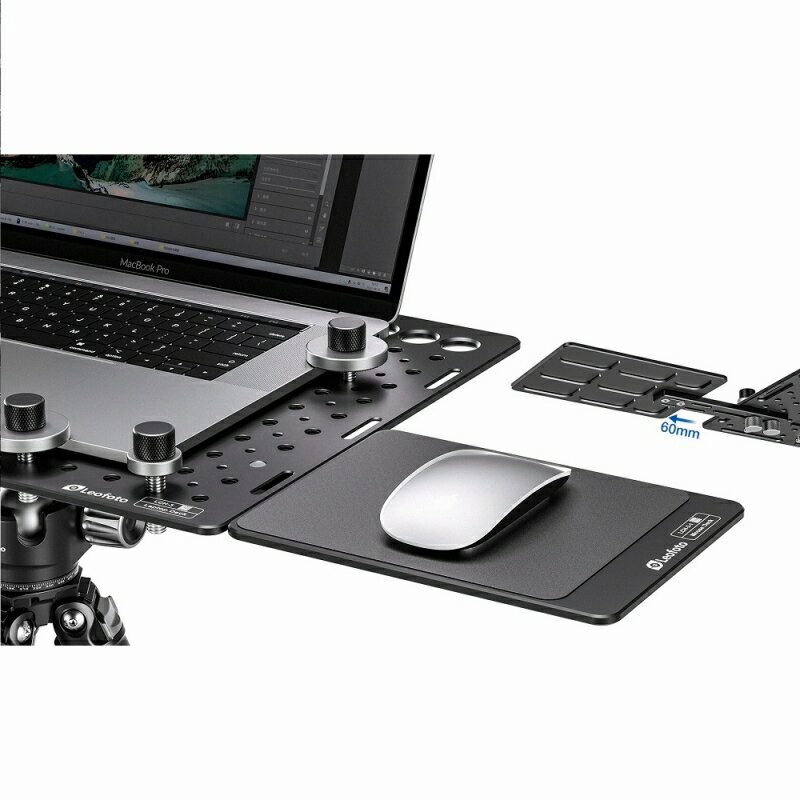 Leofoto(レオフォト) LCH-3KIT ノートPCカスタムトレイキット 三脚などに取り付けることでノートPCを固定。屋外やスタジオなどでのテザー撮影や編集作業が行いやすくなります。各種オプションの追加でより作業性が高まります。 【主な仕様】 ●重量: 2560g ●キット内容: LCH-3、LCH-3-1、LCH-3-2 ●LCH-3本体仕様 ・重量:1930g ・厚さ:55mm(PC固定ネジを除く) ・幅:460mm ・奥行:310mm ・取付ネジ規格:1/4インチ、3/8インチ、スピゴット、アルカスイス規格 ・固定可能な厚み:0~27mmLeofoto LCH-3KIT ノートPC用トレイ