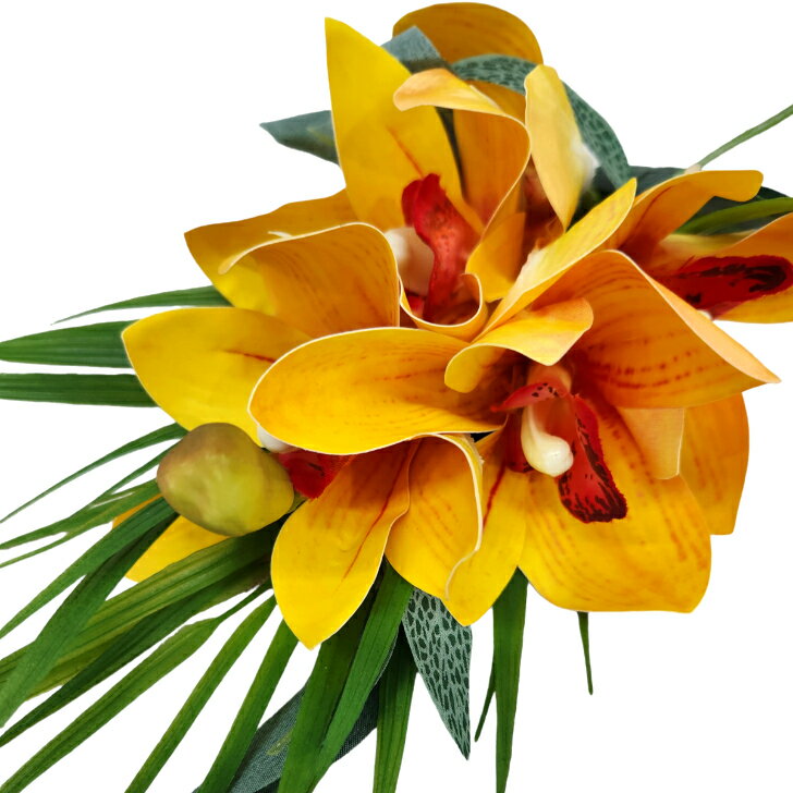 【オーキッドヘアクリップ イエロー】 ヘアアクセサリー ハワイアン雑貨 フラダンス 髪飾り 衣装