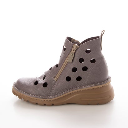 ジェイエス ハートレーベル JS Heartlavel 【日本製】4E幅広軽量パンチングデザインダブルファスナーショートブーツ (ラベンダー/グレー)