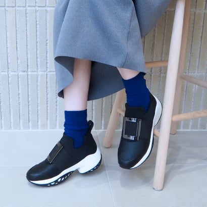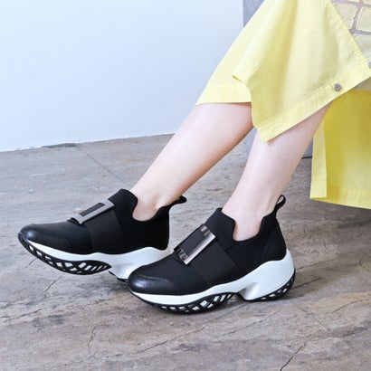 カラーコンビに合わせたメタリックバックルがモードにきまる晴雨兼用スニーカーボリューム感のある厚底ソールとモード感漂うカラーリングにメタリックスパイスを効かせたスニーカーです。ファッションスニーカーとしてはもちろんのこと、防水テープを搭載し、晴雨兼用としても頼れる1足。Iラインコーデにもオーバーコーデにもどちらでもバランスが取りやすく、スタイリングの幅が広がります。履き口にはストレッチのダイバー素材を採用しているのでスリッポンタイプで着脱も楽々。スタイルアップはもちろん、忙しい大人女子に寄り添ってくれます。ソールはスプリングが効いているので歩行も軽やか。1度履くと病みつきになる1足です。※完全防水ではございません。【着用感】Mサイズで23.5センチの大きさです。厚底スニーカーなので大きく見えますが、履いた感じはピッタリ23.5センチでした。履き口も生地なので足が入れにくいということもなかったです。エタンとプラチナの光沢素材は少し虹色のような光り方をする素材でした。※画像の商品はサンプルです。お届けする商品に仕様・サイズ等の変更が生じる場合がございます。予めご了承ください。M/23.5cm : 【重さ】352g / 【ヒール寸】5.5cm / 【プラットフォーム高さ】3cm別カラーはこちら! グレー(エタン) ゴールド(プラチナ) ブラック(ブラックブラック)