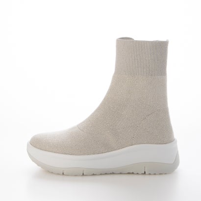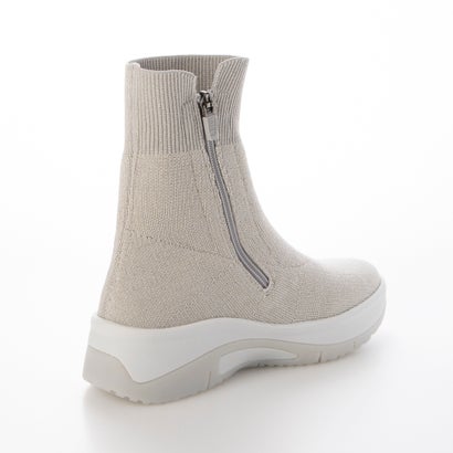 まるで靴下のようなフィット感!見た目は5.5cmのヒール高がありながらも、前後差の少ないソールで実感ヒールは3cmと安定感のある履き心地。伸縮性にすぐれた撥水ニット素材のアッパーで気持ちよく足に沿う、シルエットがきれいなシンプルデザインブーツです。着脱時に上げ下げしやすいサイドファスナーは斜めラインにすることで履き口が大きく開き、足入れしやすいデザインに。ニット素材は通気性が良く蒸れにくいためか快適で、つま先から甲にかけて裏材付きなので、ニットが伸びすぎることなく、程よいホールド感を保ってくれます。インソールはアーチをサポートする「フィットフォルムインソール」搭載で快適な歩行を促します。撥水加工も施されているので軽い雨や汚れをしっかり弾きます。履き口は足にやさしい履き心地のリブニットで窮屈感が無いのに足にぴったりと沿い、より足を細くきれいに見せてくれる効果も。ごつくなり過ぎないすっきりとしたシルエットでキレイ目に履くことができる厚底ブーツです。※完全防水ではございません。※濡れた路面では乾いた路面よりも滑りやすくなります。雨天などで濡れた路面を歩く場合は、転倒などの危険がありますので、十分ご注意ください。※対応サイズXS:21.5-22.0cm、S:22.5-23.0cm、M:23.5-24.0cm、L:24.5-25.0cmM/23.5cm : 【重さ】339g / 【ヒール寸】5.5cm / 【プラットフォーム高さ】2.5cm / 【筒丈】17cm / 【筒周り】23cm別カラーはこちら! グレー ブラック