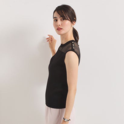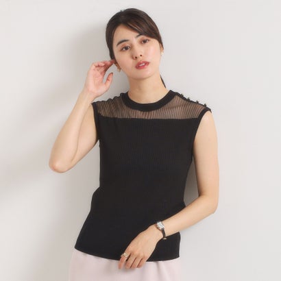 【デザイン】シアー素材の切替がおしゃれなニットトップス。リブ素材のすっきりシルエットで上品見え。さらりとしたタッチの糸を使用したリブ編みニット。ヨーク部分をシアー素材で大胆に切り替えたトレンドライクなデザイン。シアー部分は光沢感のあるナイロン素材を使用しており、光に当たるとさりげなくキラリと光ります。肩部分にはゴールドのボタンをアクセントにオン。コンパクトなシルエットでボトムにインしてすっきりと着こなすのがおすすめです。【素材】さらりとしたタッチ感の糸を使用したハイゲージのリブ編みニット。※製品寸法は平置きのスペックでございます。こちらの商品は伸縮性があります。※照明の関係により、実際よりも色味が違って見える場合があります。また、パソコン・スマートフォンなどの環境により、若干製品と画像のカラーが異なる場合もございます。----------------------------------------★お気に入り登録がおすすめ★▽気になる商品はハートマークをクリック!・再入荷やセールの通知をお知らせ・お気に入り一覧からいつでもチェック▽ブランドのお気に入り登録も!・新商品やお得な情報をいち早くお知らせ----------------------------------------【製品寸法】●製品寸法:00(フリーサイズ):着丈51cm B74cm 肩幅40cm備考:【素材】本体:レーヨン70% ナイロン19% ポリエステル11% ヨーク:ナイロン53% ポリエステル47%別カラーはこちら! パープル(ラベンダー(080)) ベージュ(ライトベージュ(051))