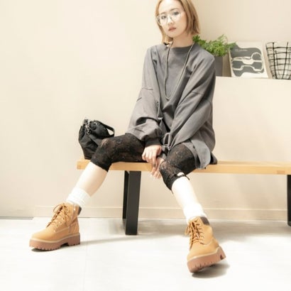 トレッキングブーツ風のレースアップデザインが旬なムードのレースアップブーツ。ハトメのアクセントと混紡のシューレースでタフな印象に。履き口にバックパッドを仕込んでカジュアル要素をON!メンズライクな足元がトレンドムードを後押し!サイドファスナーで着脱も楽々〜♪ボリュームのあるソールにも関わらず、大人っぽムードもあり!高めのソールだけど傾斜を感じさせない設計なので、アクティブな1日でも快適に盛れるのが嬉しい☆M/M(23.0-23.5) : 【重さ】578g / 【ヒール寸】4.5cm / 【プラットフォーム高さ】3cm / 【筒丈】13cm / 【筒周り】25cm別カラーはこちら! ブラック
