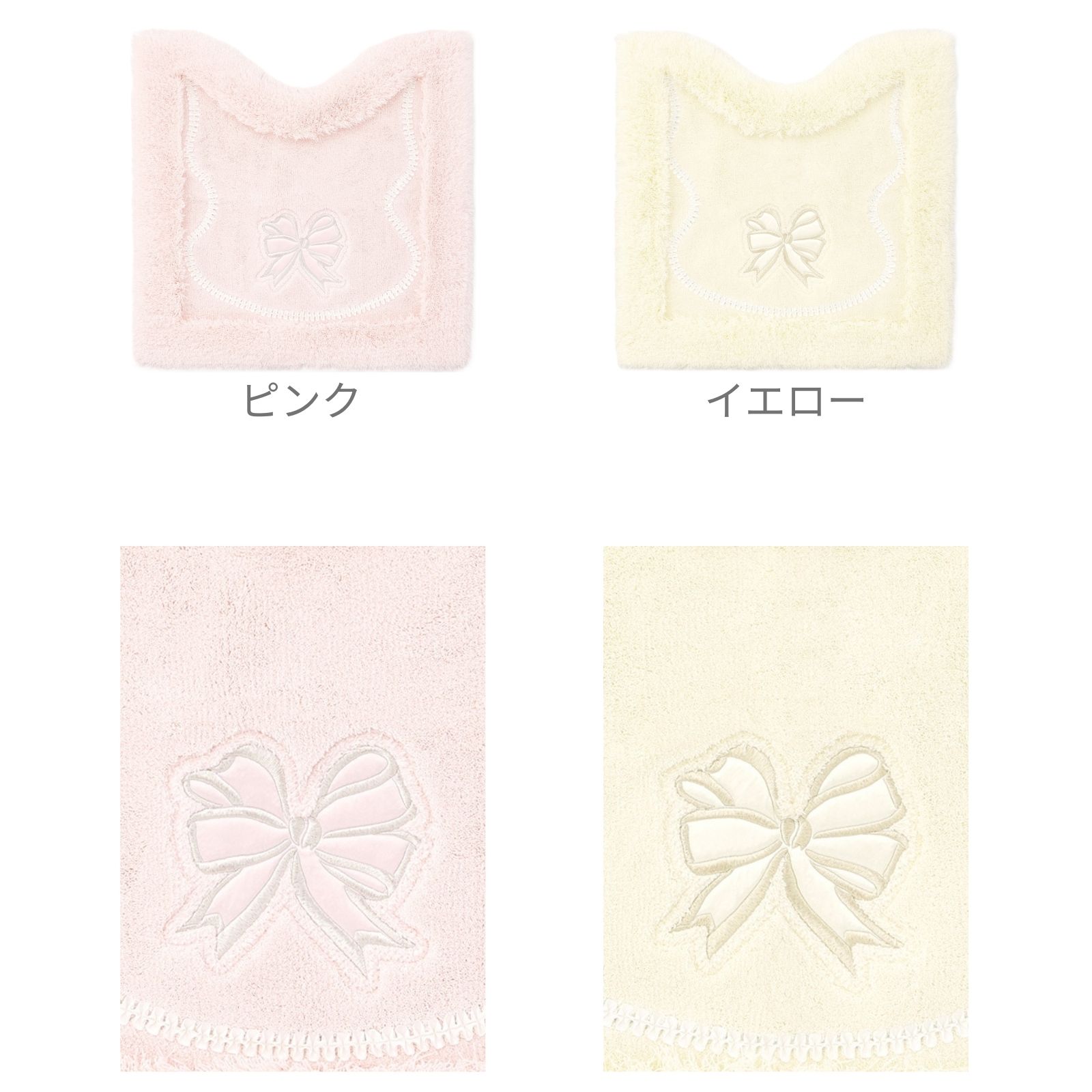 大きなリボンのアップリケ刺繍がかわいい フェミニンなトイレマット。 サテン素材の大きなリボンと、周りにはホイップクリームのようなリボン装飾を施したトイレマット。 「かわいい」がたくさんつまったお姫様チックなシリーズです。 ピンク、イエローの2色をご用意。 マットの裏面はすべり止めが付いているので、ズレにくく快適にお使いいただけます。 汚れたら洗濯ネットに入れて洗濯機でのお洗濯も可能です。 サイズ 約70cm×70cm 素材 本体:アクリル100% 装飾部分:ポリエステル100% 生産国 日本製 備考 洗濯ネットに入れて洗濯機でお洗濯できます。 Detail Color シャイニーリボンシリーズ一覧 トイレマット 70×70cm 貼るだけ簡単 吸着フタカバー 洗える スリッパ ペーパーホルダー カバー 洗面マット 50×80cm ハンドタオル 34×90cm シャイニーリボン トイレマット 大きなリボンのアップリケ刺繍がかわいい フェミニンなトイレマット。 サテン素材の大きなリボンと、周りにはホイップクリームのようなリボン装飾を施したトイレマット。 「かわいい」がたくさんつまったお姫様チックなシリーズです。 ピンク、イエローの2色をご用意。 マットの裏面はすべり止めが付いているので、ズレにくく快適にお使いいただけます。 汚れたら洗濯ネットに入れて洗濯機でのお洗濯も可能です。 サイズ 約70cm×70cm 素材 本体:アクリル100% 装飾部分:ポリエステル100% 生産国 日本製 備考 ●洗濯ネットに入れて洗濯機で洗えます。 ●乾燥機はご使用にならないでください。(熱により変形・損傷の恐れがあります。) ●ドラム式洗濯機のご使用はお避けください。(生地を傷める恐れがあります。) ●その他、お洗濯など製品のお手入れ方法に関することは、製品についたタグに記載されております『取り扱い上のご注意』をよくご確認の上お願いいたします。 お手入れ方法がご不明な場合は必ずお洗濯前にご相談ください。誤ったお手入れを致しますと生地の損傷や、毛抜けなどが起きてしまいます。この場合のご返金やご返品のご対応は致しかねますので何卒ご了承くださいますようお願い申し上げます。 マットの裏側のオレンジ色の点につきまして マットの裏側にある『オレンジ色の点』に 関しましてこちらは、表側のデザインの 目印となるもので製造上避けることが 出来ないものです。 また、このオレンジ色の点はお洗濯する ことで薄くなってまいります。 マット製品ほぼ全てにこちらはついており ますがご使用上全く問題はございません のでどうぞ安心してこ使用ください。⇒詳しくはこちらをご確認ください。 当店では有料にて種類豊富なギフト用ラッピングをご用意しております。ギフト・のしについて詳しくはこちら