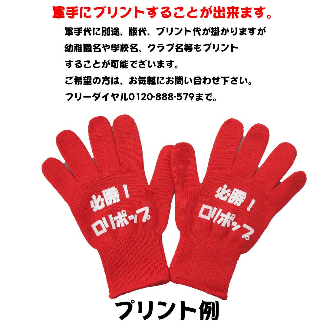 大人用カラー軍手 国産 綿100% カラー軍手、女性用 男性用手袋(全12色)軍手カラー手袋 入園 入学 幼稚園 保育園 小学校の詳細 ●素材:肌に優しい天然素材 綿100% ●数量:1組2枚 ●サイズ男性用:22.5cm 女性用:21cm ●カラー:12色よりお選びください ●日本製 大人用カラー軍手 国産 綿100% カラー軍手、女性用手袋(全12色)軍手 カラー手袋 入園 入学 幼稚園 保育園 小学校説明 野外活動でや、自然学習での活動、また運動会やいろいろなイベントやお掃除の時間にも大活躍。 幼稚園や保育園の手遊びシアタータイムではカラー軍手が可愛い狸やタコやウサギに変身!指人形にはカラー軍手が必需品です。手に優しい綿100%素材を使用しておりますので安心してお使いください。また気になる静電気や肌荒れの心配もなく、敏感肌の人でもお使いいただけます。 *この商品は、幼稚園名・学校名・会社名・クラブ名・サークル名などの名前をプリントすることが可能でございます。 お気軽に問い合わせ下さい。フリーダイヤル0120-888-579(別途版代・プリント代かかります) ※即日発送致します。 但し大量注文時は、お時間をいただく場合も有りますのでご了承下さい。 *幼稚園や小学校のイベントなどで、大量にお買い求めいただくことも可能です。上記お問い合わせボタンよりご連絡下さい。 子供用のカラー軍手は、はこちら 入園入学式の時に便利なお父様用上履きはこちら 紺上履きはこちら お子様の雨具は、こちら 傘はこちら オシャレグッズはこちら スクール水着はこちら 子供用の上履きや体操服はこちら エプロン三角巾は、こちら ランドセルカバーはこちら パスケース・時計はこちら 入園入学式の時に便利なスリッパ、上履きはこちら リュックサックはこちら