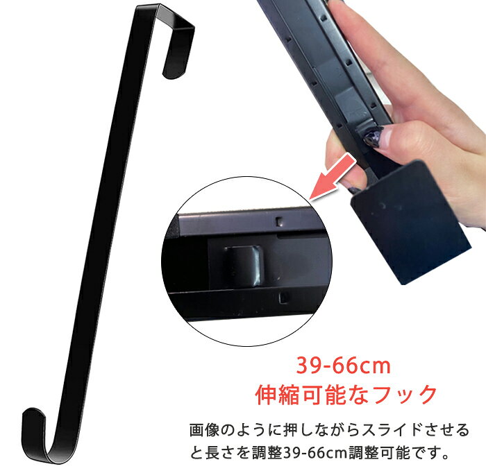 【20日限定10%OFFクーポン】即納 リースフック 長さ調整可 クリスマス リース フック リースハンガー リースホルダー リース用 ドアフック 玄関 伸縮 39-66cm クリスマスリース ハロウィンリース ハロウィン 正月飾り しめ縄 花輪 北欧 ドアハンガー ドア掛け用 吊り下げ