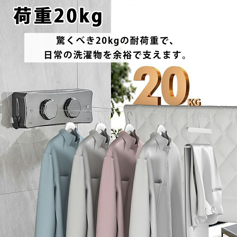 室内物干し 物干しワイヤー 室内物干しワイヤー 物干し用ロープ 耐荷重20kg 全長5.1M 巻き取り 穴開け不要 304ステンレス 高強度 耐荷重20kg 全長5.1M 壁掛け コンパクト DIY オシャレ インテリア 防水 洗濯物 取り付け簡単 一人暮らし 必要なもの 洗濯干し 室内