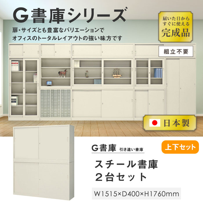 【最大1万円クーポン11/20-26】 書庫 上下セット 鍵付き A4 幅1515×奥行400×高さ1760mm 引戸書庫 スチール書庫 キャビネット 引き違い書庫 オフィス収納 本棚 書類収納 収納棚 書棚 G-53SSS