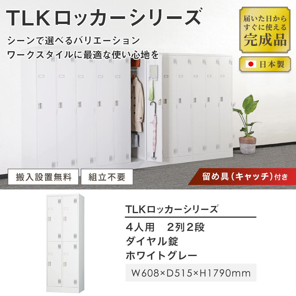 【最大1万円クーポン11/20-26】 【設置無料】 ロッカー 4人用 スリム 2列2段 ダイヤル錠 ホワイトグレー スチールロッカー 更衣ロッカー オフィス収納 更衣室 おしゃれ 鍵付き 業務用 TLK-D4SN