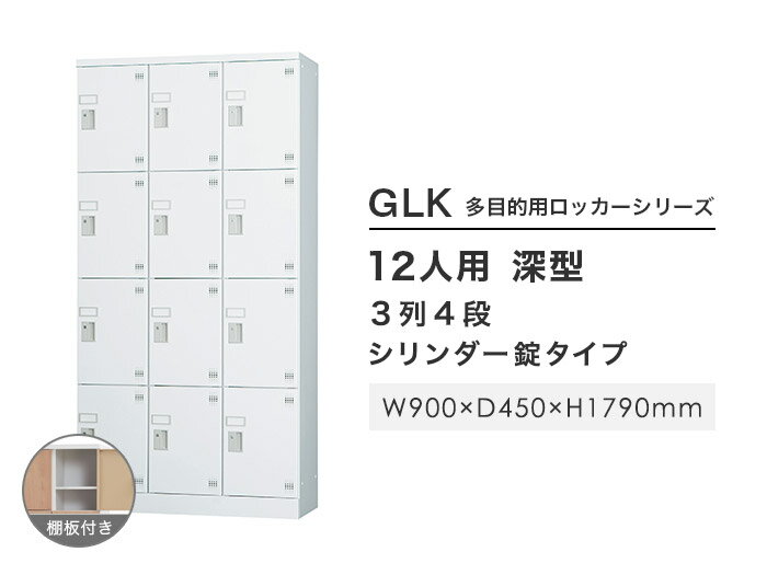 【最大1万円クーポン11/20-26】 【搬入設置無料】ロッカー 12人用 3列4段 シリンダー錠 窓なし 鍵付き ロッカー 保管 深型 更衣室 靴箱 シューズロッカー 日本製 国産 収納 H1790 GLK-S12DTS