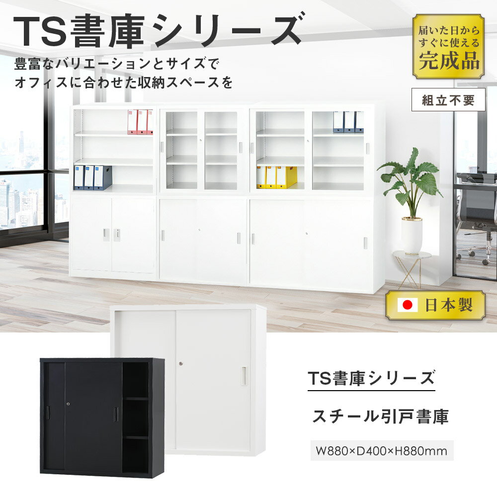 【搬入設置無料】スチール引戸書庫 スチール書庫 TSシリーズ オフィス収納 書棚 国産 日本製 浅型 オフィス 学校 完成品 幅880×奥行400×高さ880mm TS-33S