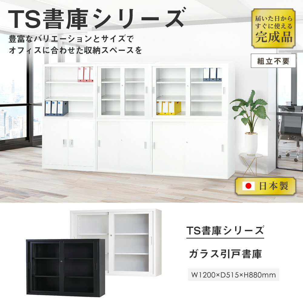 【搬入設置無料】ガラス引戸書庫 スチール書庫 TSシリーズ オフィス収納 国産 オフィス 学校 完成品 スチール収納庫 職場 幅1200×奥行515×高さ880mm TS-43DG