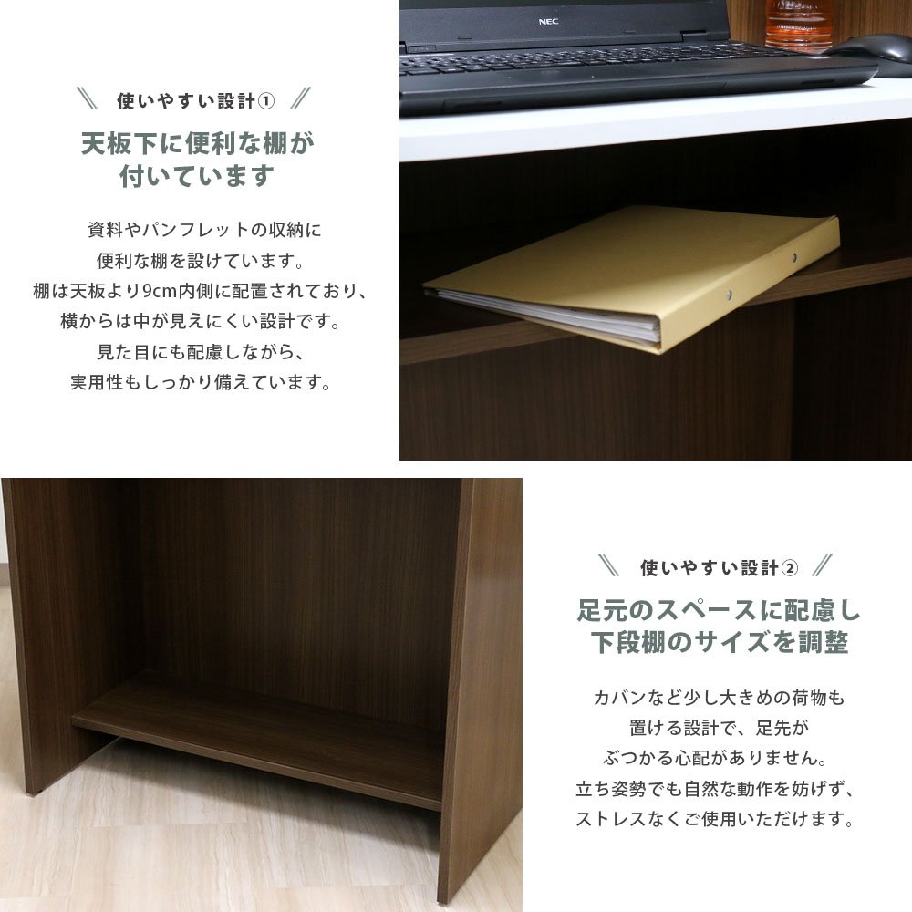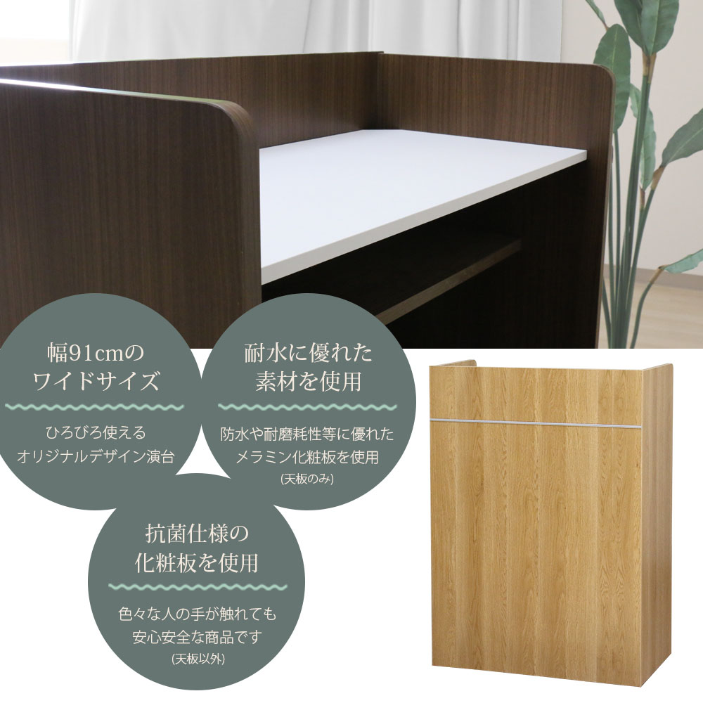 【P5倍11/15 13-15時&最大1万円クーポン11/14-16】 【法人限定】 演台 幅91×奥行45×高さ115cm 演説台 受付台 講演台 司会者台 教卓 カウンター 国産 木製フレーム 棚付き 収納 学校 会議 オフィス CAB-05W900