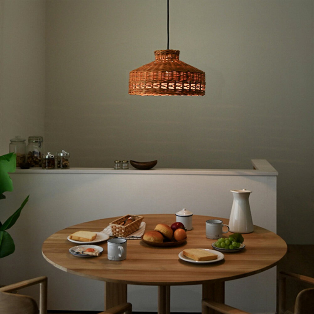 【P5倍11/25 13-15時&最大1万円クーポン11/20-26】 ランプシェード Lサイズ 直径38×高さ23cm 照明 ランプ ペンダントライト 天井照明 コード付 吊り下げ ラタン 籐 職人 ハンドメイド アジアン おしゃれ P122LME