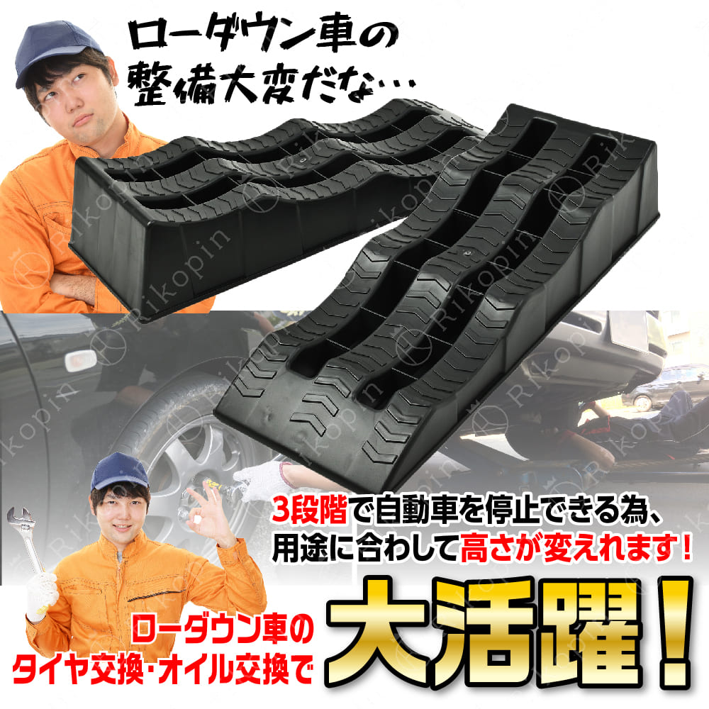 【クーポンで最大2000円OFF】 カースロープ 波型 選べる色 車対応 2個セット 整備用スロープ ローダウン車対応 ジャッキアップ補助 カーランプ 610×210×120mm