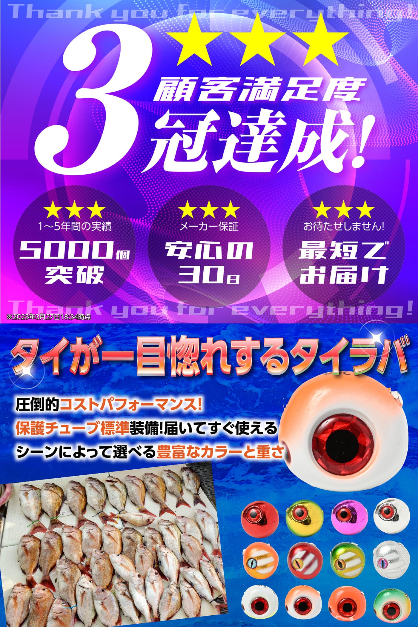 【商品説明】 タイが一目惚れするタイラバ 保護チューブ標準装備!届いてすぐ使える シーンによって選べる豊富なカラーと重さ 定番の鉛製!根掛かりしてもローコスト! F~Mタイプ(蓄光)光が届きづらい水深が深い場所や暗い海でもタイに強力アピールが可能! 【仕様】 [品名]タイラバ [重量]60g 80g 100g 120g 1450g 200g [カラーバリエーション]13種類(6-13は蓄光タイプ) [その他]保護チューブ標準装備、丸型 [生産国]made in china [販売元]株式会社Rikopin Holdings 【商品に関する注意事項】 ・ご使用上の事故や損害について当店は一切の責任を負いません。ご使用の際には、安全の為、大人が目を離さず監視ををご使用下さい。 ・サイズをよくお確かめの上、ご注文宜しくお願いします。サイズが合わない理由の返品・返金は出来かねますのでご了承下さいませ。 ・加工される場合や使用上での劣化が原因などの場合には保証できません。サポートやメール対応は行っていません。 ・メーカーによる商品のデザイン、仕様、外観、色合いにつきましては予告なく変更される場合がございます。またお客様のモニターなどの環境により商品の写真等の色は実物とは多少異な場合がありますので予めご了承下さい。 【配送/注文に関する注意事項】 ・注文後のキャンセルは対応しておりませんのでご了承ください。 ・上記以外の初期不良につきましては、商品到着より7日以内に連絡頂いた場合対応を行います。8日以上経過した場合は対象外になりますのでご了承ください。 【使用用途】 タイラバ ヘッド タイラバヘッド 鯛ラバ 鯛ラバヘッド ロッド サビキ 釣り ネクタイ フック タイラバロッド リール 針 ビンビンスイッチ スタート ライン 60g 80g 100g 120g 150g 200g 2025-04-11[120g][150g][200g][100g][60g][80g][7-Gタイプ蓄光][8-Hタイプ蓄光][13-Mタイプ蓄光][9-Iタイプ蓄光][5-Eタイプ][3-Cタイプ][10-Jタイプ蓄光][11-Kタイプ蓄光][6-Fタイプ蓄光][2-Bタイプ][1-Aタイプ][4-Dタイプ][12-Lタイプ蓄光][スポーツ・アウトドア][スポーツ用品][JAN: ]【商品説明】 タイが一目惚れするタイラバ 保護チューブ標準装備!届いてすぐ使える シーンによって選べる豊富なカラーと重さ 定番の鉛製!根掛かりしてもローコスト! F~Mタイプ(蓄光)光が届きづらい水深が深い場所や暗い海でもタイに強力アピールが可能! 【仕様】 [品名]タイラバ [重量]60g 80g 100g 120g 1450g 200g [カラーバリエーション]13種類(6-13は蓄光タイプ) [その他]保護チューブ標準装備、丸型 [生産国]made in china [販売元]株式会社Rikopin Holdings 【商品に関する注意事項】 ・ご使用上の事故や損害について当店は一切の責任を負いません。ご使用の際には、安全の為、大人が目を離さず監視ををご使用下さい。 ・サイズをよくお確かめの上、ご注文宜しくお願いします。サイズが合わない理由の返品・返金は出来かねますのでご了承下さいませ。 ・加工される場合や使用上での劣化が原因などの場合には保証できません。サポートやメール対応は行っていません。 ・メーカーによる商品のデザイン、仕様、外観、色合いにつきましては予告なく変更される場合がございます。またお客様のモニターなどの環境により商品の写真等の色は実物とは多少異な場合がありますので予めご了承下さい。 【配送/注文に関する注意事項】 ・注文後のキャンセルは対応しておりませんのでご了承ください。 ・上記以外の初期不良につきましては、商品到着より7日以内に連絡頂いた場合対応を行います。8日以上経過した場合は対象外になりますのでご了承ください。 【使用用途】 タイラバ ヘッド タイラバヘッド 鯛ラバ 鯛ラバヘッド ロッド サビキ 釣り ネクタイ フック タイラバロッド リール 針 ビンビンスイッチ スタート ライン 60g 80g 100g 120g 150g 200g 2025-04-11