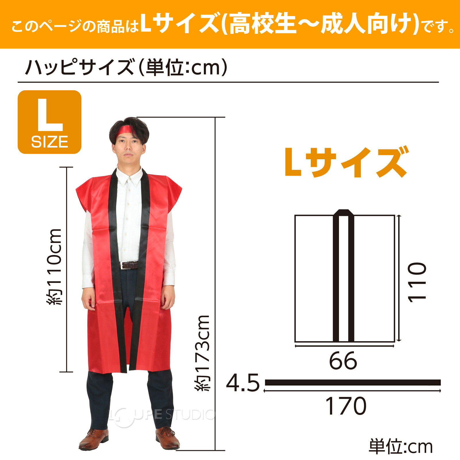 法被 サテン 大人 ロング ハッピ (ハチマキ付) Lサイズ 高校生~成人向 はっぴ 祭り 運動会 応援グッズ 体育祭 発表会 衣装 赤 青 黄 緑 ピンク 白 黒 紫 金 橙 学芸会 お遊戯会 エイサー よさこい ソーラン節