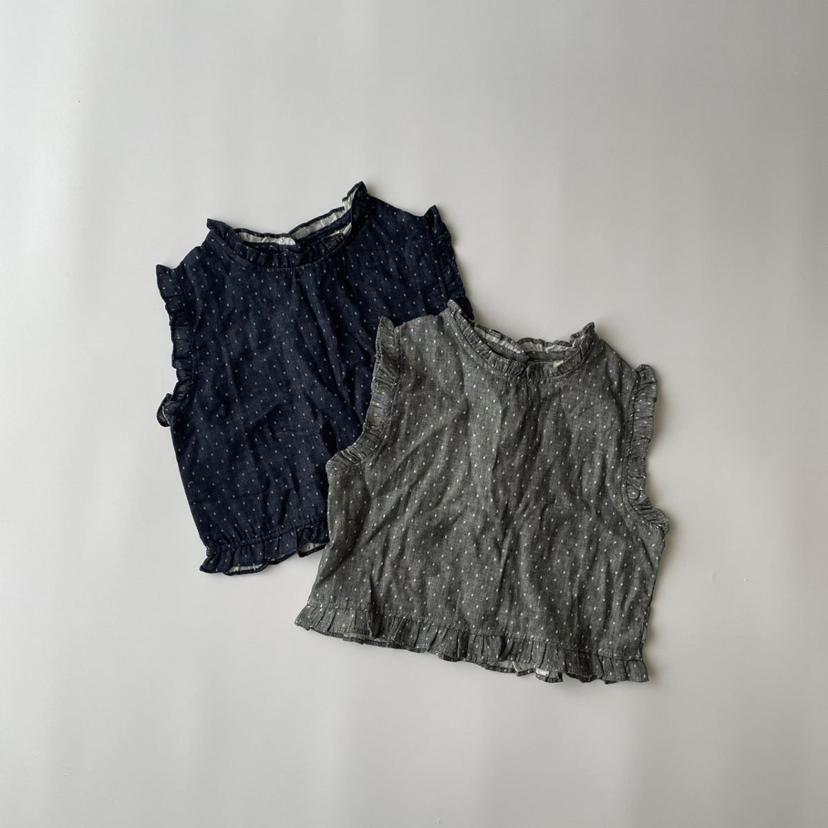 \20%OFFセール/ キッズ ベビー トップス frill dot tops フリル ドット タンクトップ ノースリーブ 女の子 可愛い 韓国 風 シンプル クラシック クラシカル 80cm 90cm 100cm 110cm 120cm 130cm インポート 輸入 子供服 春 夏 秋 送料無料