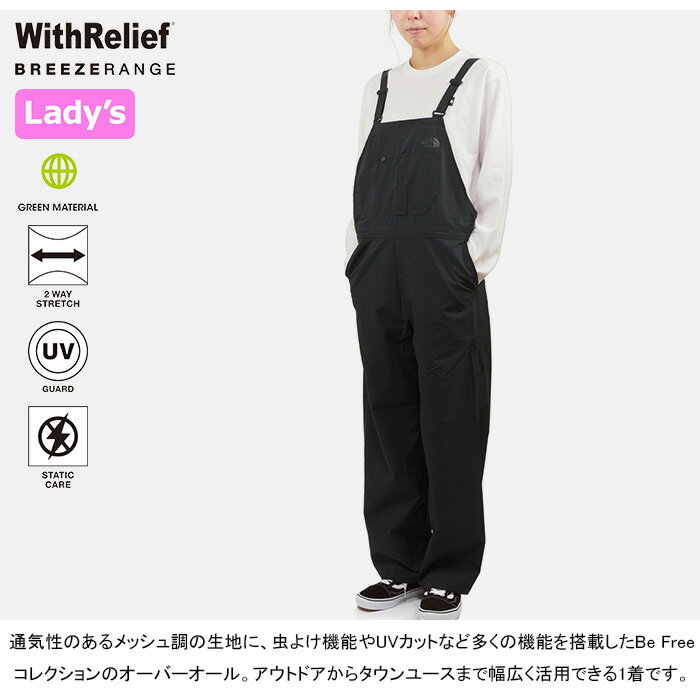 ザ・ノース・フェイス THE NORTH FACE NBW32530 TNFビーフリーオーバーオール レディース TNF BE FREE OVERALL ストレッチ サロペット オールインワン アウトドア ウィメンズ ボトムス UVカット つなぎ 虫よけ 作業着 女性 K ブラック 国内正規 2025SS 20%OFF セール