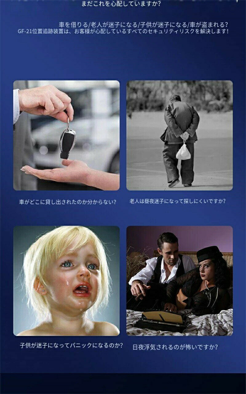 この商品は、大容量バッテリーを装備したGPS発信機です。主に浮気調査や盗難防止などに使用されるもので、リアルタイムの位置情報を取得することが可能です。そのため、所定の位置から移動した際にすぐに把握することができます。このGPS追跡器は小型で、どこにでも簡単に取り付けることが可能です。また、大容量バッテリーを搭載しているため、長時間の使用も可能です。また、本体は耐久性に優れており、多少の衝撃や悪天候にも耐えられるように設計されています。本製品は、調査会社やセキュリティ業者だけでなく、一般の方々の生活への安全対策としても活用可能です。例えば、車やバイクの盗難防止、子供やペットの迷子防止、高齢者の徘徊防止など、さまざまな用途でご利用いただけます。ただし、プライバシー問題などには配慮し、適切な使用を心掛けてください。このGPSデバイスは、SIMカードを必要とします。SIMカードが装着されることで、リアルタイムの位置情報を提供します。この機能により、デバイスは位置情報を提供するためにモバイルネットワークとやり取りすることが可能です。SIMカードを装着すれば、いつでもどこでも追跡情報を提供することができます。購入時にSIMカードは含まれていませんので、別途お客様自身でご準備いただく必要があります。この商品は、大容量バッテリーを装備したGPS発信機です。主に浮気調査や盗難防止などに使用されるもので、リアルタイムの位置情報を取得することが可能です。そのため、所定の位置から移動した際にすぐに把握することができます。このGPS追跡器は小型で、どこにでも簡単に取り付けることが可能です。また、大容量バッテリーを搭載しているため、長時間の使用も可能です。また、本体は耐久性に優れており、多少の衝撃や悪天候にも耐えられるように設計されています。本製品は、調査会社やセキュリティ業者だけでなく、一般の方々の生活への安全対策としても活用可能です。例えば、車やバイクの盗難防止、子供やペットの迷子防止、高齢者の徘徊防止など、さまざまな用途でご利用いただけます。ただし、プライバシー問題などには配慮し、適切な使用を心掛けてください。このGPSデバイスは、SIMカードを必要とします。SIMカードが装着されることで、リアルタイムの位置情報を提供します。この機能により、デバイスは位置情報を提供するためにモバイルネットワークとやり取りすることが可能です。SIMカードを装着すれば、いつでもどこでも追跡情報を提供することができます。購入時にSIMカードは含まれていませんので、別途お客様自身でご準備いただく必要があります。