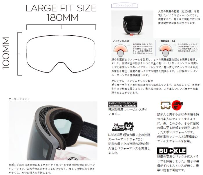 2023/2024モデル DRAGON / ドラゴン 【 当店限定 お買上げ特典 】 ゴーグルを湿気から守る DRAGON GOGGLE KEEP DRY PAD をお買い上げの方全員にプレゼント! (1100円相当) 数に限りがございます。 無くなり次第終了なのでお早めにどうぞ! ◇モ デ ル:PXV ◇定価:29,700円(税込) ◇日本正規品(国内代理店流通商品) ◇ストラップカラー:PREMIUM BLACK ◇UV透過率:100%カット ◇フィット:ジャパンフィット 日本人の顔に適したモデルです。 こちらも日本正規品のみのフィットモデルです。 【付属品】 ◇DRAGONソフトケース&マイクロファイバーソフトケース ◇DRAGONステッカー(DRAGONステッカーは 通常販売はありません。ライダーのみ配られているものと商品についているもののみです。) 【アイテム詳細】 DRAGON史上最高の視界範囲・フィット力の高さを誇るPXV (ピーエックスブイ) 全PXVにジャパンルーマレンズを採用した最強コンビネーション。 人間の視野 最大200度を丸ごとレンズ面で開放したPANOTECH LENS 採用のベストセラーモデル。 透明・鮮明性が高いJAPAN LUMALENS によってさらに爽快なパノラマの景色が広がります。男性、大き目サイズを好む女性、広い視野を求める方に人気です。 ◆PREMIUM BLACKストラップ◆ ブラックベースにホワイト色のシリコンロゴが入った、DRAGON定番のストラップデザイン。半艶のサテンフレームが高級感を醸し出します。 ・パノテックレンズテクノロジー (人間の視野範囲約200度を最大限に確保する為に、 顔の側面部まで巻きつくように湾曲した、 平面・球面の両技術ブレンドのハイブリッドレンズ。 DRAGON史上最高峰の視野を誇る新テクノロジー) ・INFINITY LENS 特許取得済フレームレステクノロジー ・SUPER ANTI FOG 超強力曇り止め加工 スーパーアンチフォグ2.0 ・JAPAN LUMA LENS 全天候対応 ジャパンルーマレンズ ・BUCKLE バックル式ストラップ ・JAPAN FIT 日本人骨格に合わせたジャパンフィット ・100%UVカット ・完全ヘルメット対応 ◆JAPAN LUMALENS◆ LUMALENS®(ルーマレンズ) は 色彩を調節し、対象物のコントラストを 強くすることにより、雪面地形の凹凸を 立体的に際立たせるレンズです。 対象物の3次元情報を正確に確実にとらえます。 また、視覚情報が自動的に調節されるので 眼球への負担を軽減する効果ももたらします。 2017年、日本人の瞳と日本の悪天候に合わせて 透過率とレンズカラーを調整した ジャパン仕様が誕生しました。 ※こちらのレンズは日本正規品のみの販売です。 並行輸入品には取扱いがございません。 当店はすべて国内正規代理店の 正規保証商品なので安心です。 故障時の保証やパーツの購入が 正規価格にて受けることが可能です。 ↓ご注文前に必ずお読みください↓ ◆商品確保・在庫状況について 当店は実店舗と在庫を共有し販売しております。 そのため同時注文・タイムラグ等で完売となってしまう場合がございます。 その際はメーカー在庫の対応となりお届けに日数(5〜7営業日程度) をいただきますのでご了承ください。 また、メーカーに在庫が無い場合は大変申し訳ございませんが キャンセルとさせていただきますのでご了承ください。 ※イメージが違う、サイズが合わない、 注文を間違えた等のお客様のご都合による キャンセル、返品、交換は一切行っておりません。(セール品を含む) ※外箱の破れや潰れがある場合がございます。 商品に影響のない範囲はご了承ください。 ※記載の画像はお使いのパソコンなどの 環境により多少色の誤差が生じる場合がございます。 ご了承ください。 その他、お買い上げ前に 決済・配送・返品のページを ご確認いただけるようお願い申し上げます。