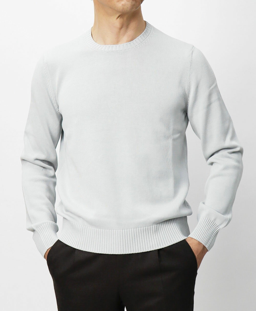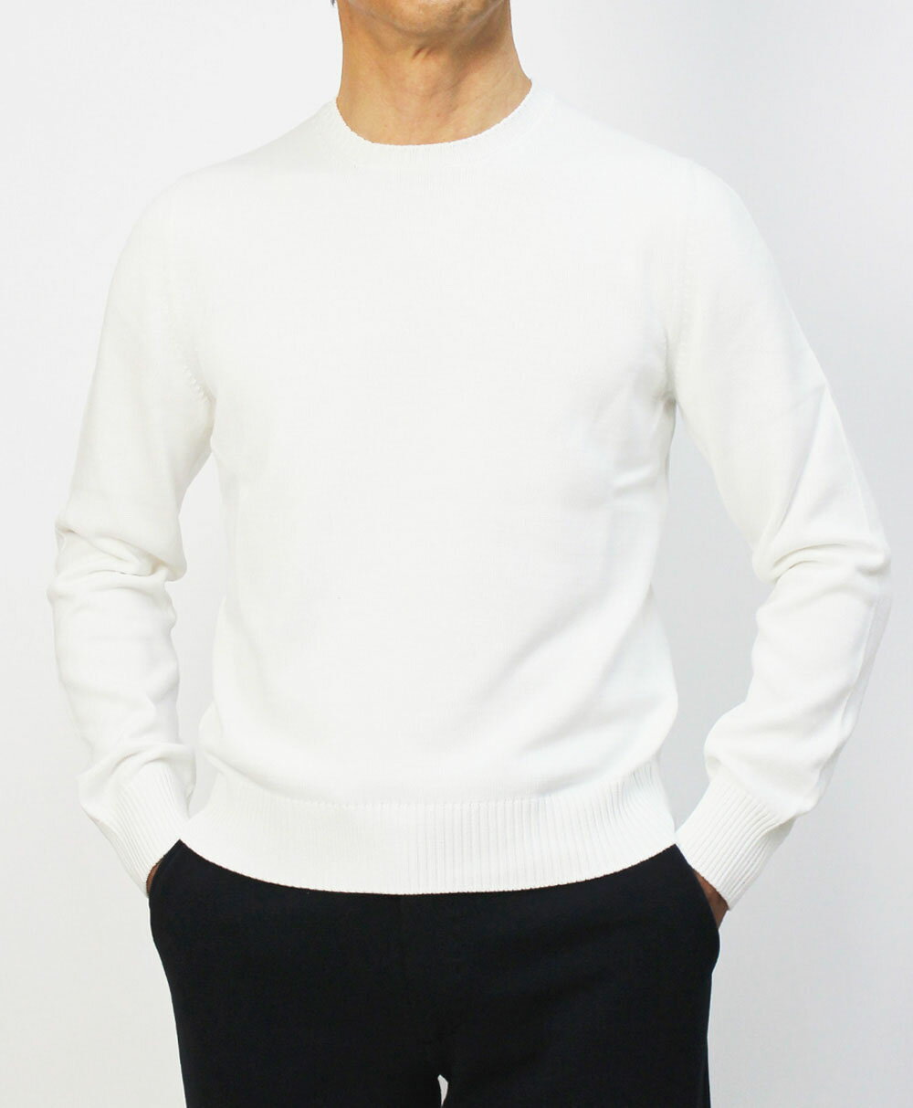 グランサッソ / GRANSASSO / 長袖 クルーネック ニット / 8G ソフト コットン / 23107-18136 【001.ホワイト/050.アイスグレー/095.グレー/099.ブラック】