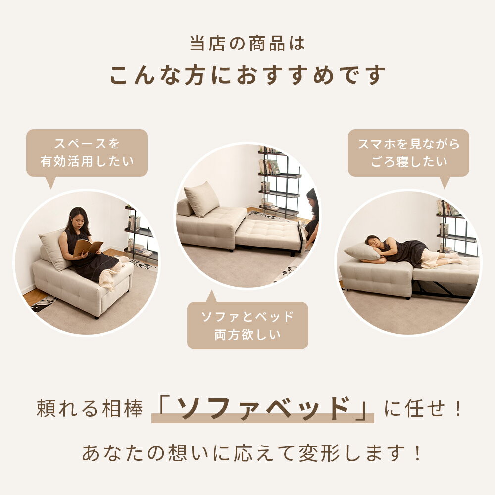 📝 保証期間 商品の保証期間は1年間でございます。 万が一ご購入から1年以内に品質上の問題が発生した場合は、新品への無償交換を承っております。 🛡 高い耐久性と快適な肌触り:「高耐久ファブリック」素材 ペット&子供に最適な耐久性:撥水・防汚加工を施した高密度ファブリックは、傷や汚れに強く、長く美しい状態を保ちます。 上質な肌触り:サラッとしていながらも柔らかい感触で、心地よくお使いいただけます。 お手入れ簡単:日常は拭くだけ、クッションカバーは洗濯可能で清潔をキープ。 💺 自由に調節できる快適な背もたれ 2つのマルチクッション:アーチ型サポートクッション+長方形抱き枕のセット。 好みの位置に調整でき、読書・仮眠・映画鑑賞など多用途に最適。腰や背中にフィットして快適なリラックス姿勢を実現。 🛏 らくらく引き出し式で、ソファがベッドに早変わり ワンアクションでソファから幅200cmのシングルベッドに早変わり。 段差のないフラット構造で快適な寝心地を提供。 使用しないときは省スペースに収納可能。 👍 開封してすぐ使える完成品 工場で完成済みの状態でお届け。 組み立て不要で、到着後すぐにくつろぎの時間を楽しめます。 🔧 商品仕様 ● ソファ時サイズ:幅112cm × 奥行80cm × 高さ45cm ● ベッド時サイズ:幅200cm × 奥行80cm × 高さ45cm ● クッション: ・アーチ型サポート:24×54×24cm ・長方形抱き枕:50×60×20cm ● 主素材:高耐久ファブリック(撥水・防汚加工) ● 内部材:高弾性スポンジ ● フレーム:強化ブラックスチールフレーム 💬 お問い合わせ 弊社の製品に関するご質問等がございましたら、お気軽にお問い合わせください。 ※土・日曜日及び祝日の場合は返事が遅くなる場合があります。