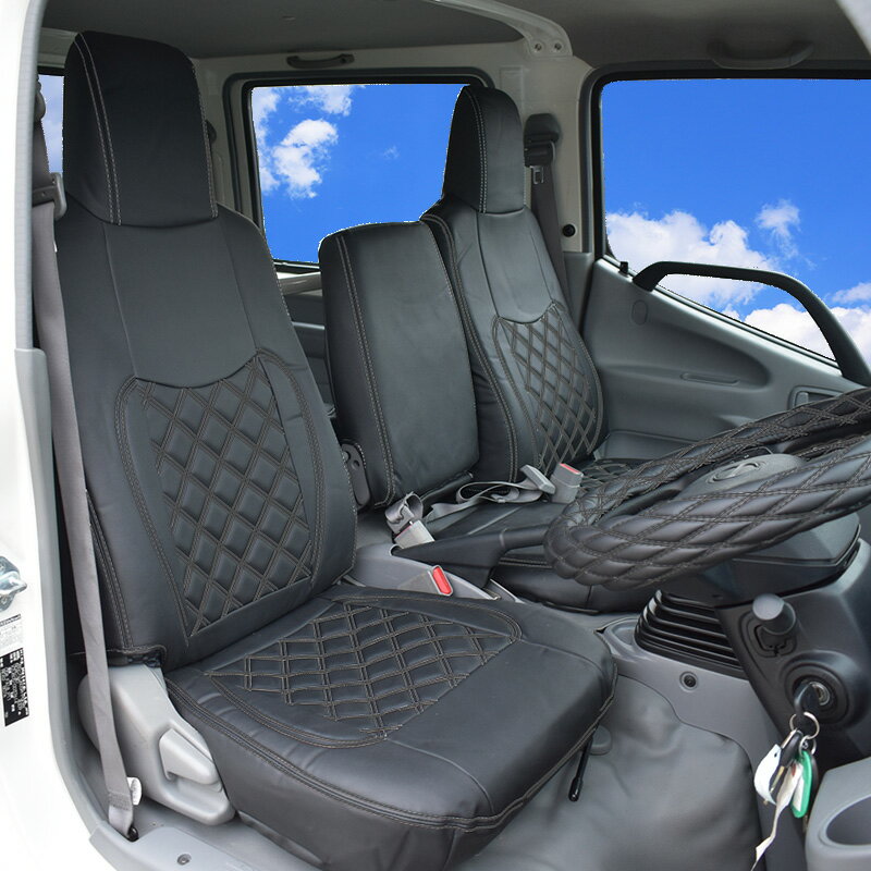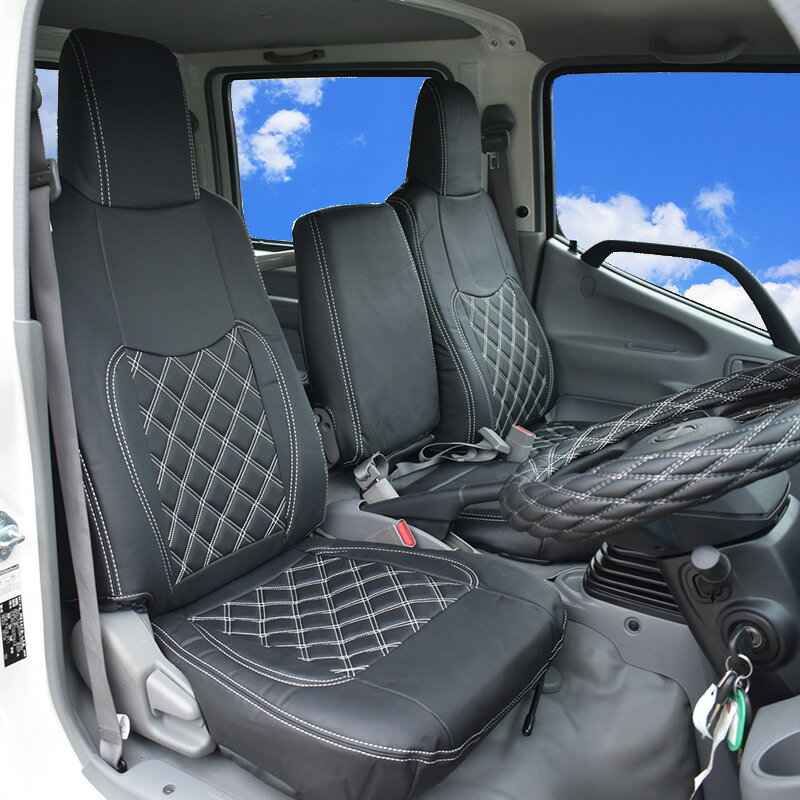 日野 デュトロ ダイナ トヨエース シートカバー 標準 ダブルキャブ R1.5〜 新型 フロント リア シート カバー 運転席 助手席 カスタム パーツ 内装 カスタム パーツ レザー PVC ホワイト ブラック レッド ブルー ステッチ パンチング 862F/R