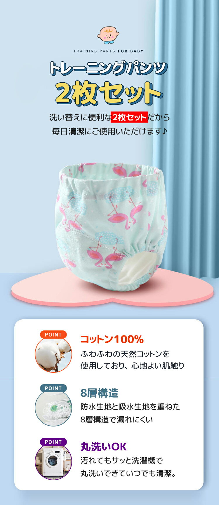 \お得な2枚セット!/ トレーニングパンツ 8層 女の子 男の子 夜 トレーニング パンツ 90 100 おねしょパンツ 子供 子ども キッズ トイレトレーニング パンツ コットン 綿 防水 吸収 伸縮性 通気性 洗濯機ok トイトレ トレパン おねしょ対策