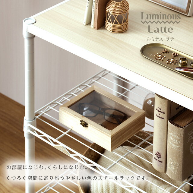 Luminous ルミナス 直営店 ラテ スチールラック ラック 木製 幅80 おしゃれ 3段 スリム 北欧 収納棚 白 ホワイト 隙間 キッチンラック キッチン収納 ウッドラック レンジラック 炊飯器 オープンラック スチールシェルフ 食器棚 かわいい 可愛い 子供 LL8090-3WD
