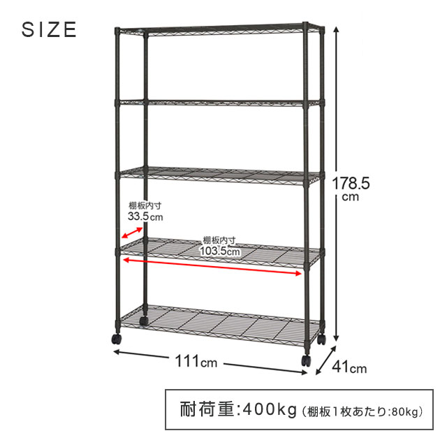 特徴 ■大人のライフスタイルに男っぽさが魅力のルミナス新シリーズ ■近年の省スペース用家財に合わせた奥行きスリムな40cm設計 ■ヴィンテージ感のあるスタイリッシュなラックセット。 ■ハンマートーン塗装で防錆性が高く傷にも強い塗装 ■壁面収納としてもちょうど良い高さの5段タイプ 外形寸法 (約)幅111×奥行41×高さ178.5cm シェルフ内寸 (約)幅103.5×奥行33.5cm 耐荷重(棚板1枚あたり) スチールシェルフ:(約)80kg ※耐荷重の値は、スチールシェルフ(棚)全面に、均等に荷重をかけた場合の値になります。 耐荷重(ラック全体) (約)400kg ポール分割サイズ 2分割タイプ [上部ポール]約85.1cm [下部ポール]約86.8cm カラー スチールシェルフ・ポール・ワイヤーバー・スリーブ・アジャスター/ブラック 材質 スチールシェルフ・ポール・ワイヤーバー/スチール(ハンマートーン塗装) ディバイダー/スチール スリーブ・アジャスタ—/ABS樹脂 本体重量 (約)16.35kg セット内容 スチールシェルフ(棚板)×5 スリーブ(棚取付用部品)×20 ポール×4 アジャスター×4 キャスター(ストッパーなし)×2 キャスター(ストッパーあり)×2 梱包サイズ/梱包込重量 (約)幅113×奥行43×高さ22cm/(約)17.6kg ポール径/シリーズ 25mm/ルミナスノワールシリーズ(Luminous NOIR) カテゴリ 収納家具/オープンラック/スチールラック 型番 NO1118-5 JAN 4550084450902スチールラックブランド「ルミナス」を含むドウシシャ製のスチールラックは全国ホームセンターの80%以上のスチールラック売り場で採用されています。(※当社調べ)収納ラックのプロであるバイヤーが選ぶスチールラックです。ルミナスノワールシリーズは棚板 耐荷重80kgで、一般のご家庭用ラック、クローゼット収納、オフィス収納ラックとしてのご利用を目的に、リーズナブルでコストパフォーマンスに特化したスチールラックです。ルミナスノワールシリーズ専用のカスタムパーツの豊富さはもちろん、ルミナスのポール径25mm専用パーツが全て互換性を持っており、頑丈・機能的で優れた拡張性も人気です。延長ポールを使用して高さをアップしたり、つっぱりポールを追加して耐震対策や転倒防止などお子さま部屋での収納にも安心してお使いいただけます。お客様のご自由に、拡張・カスタムが可能です。耐荷重に優れたスチール製ラックはスチールラック 、ワイヤーラック 、 パイプラック 、 シルバーラック 、 メタルシェルフ 、 ワイヤーシェルフ 、 ポールラック タイヤラック として、収納家具、収納棚 、 メタル製ラック、スチールシェルフ・メッシュラック ランキング上位常連の激安・おしゃれな収納ラックです。